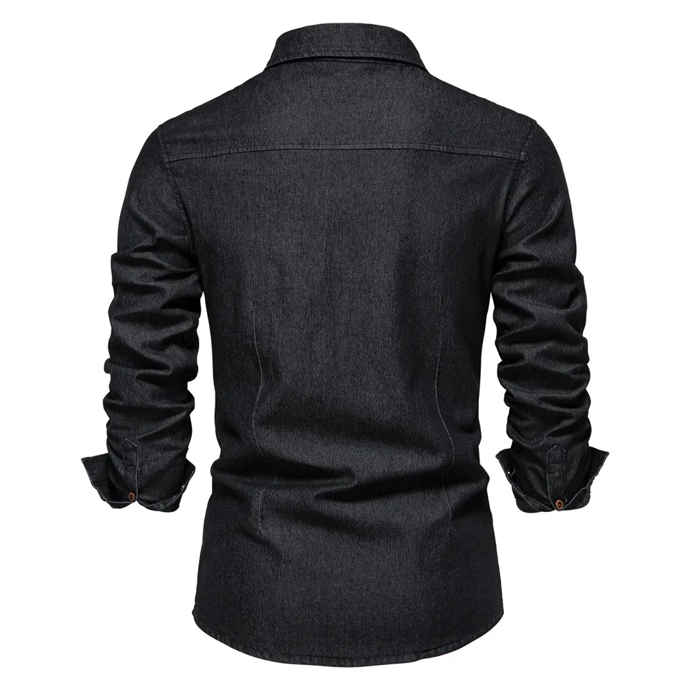 Be the first to review “2025 Brand Elastic Cotton Denim Shirt Men Long Sleeve Quality Cowboy Shirts for Men Casual Slim Fit Mens Designer Clothing” Cancel reply