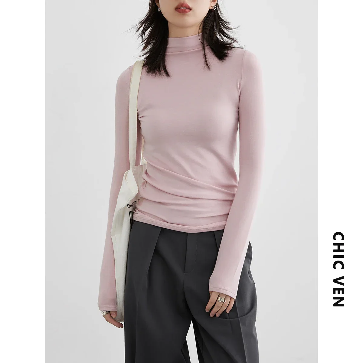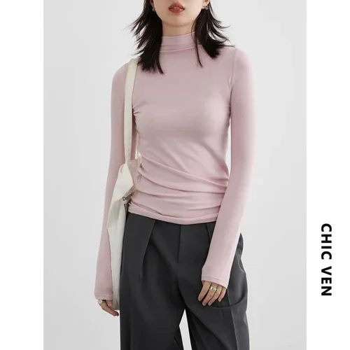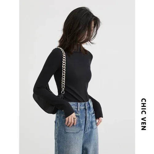 CHIC VEN Women’s T-shirt New Multi Color Woman Tees Base Shirt Slim Fit Female Tops Office Ladies Clothing Spring Autumn 2023