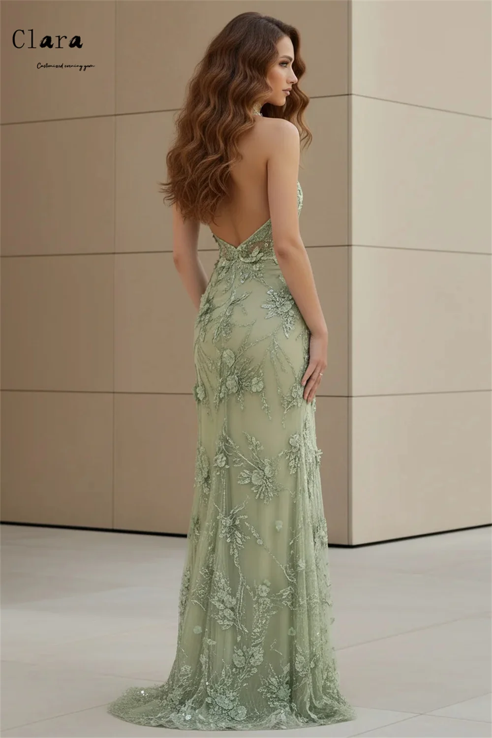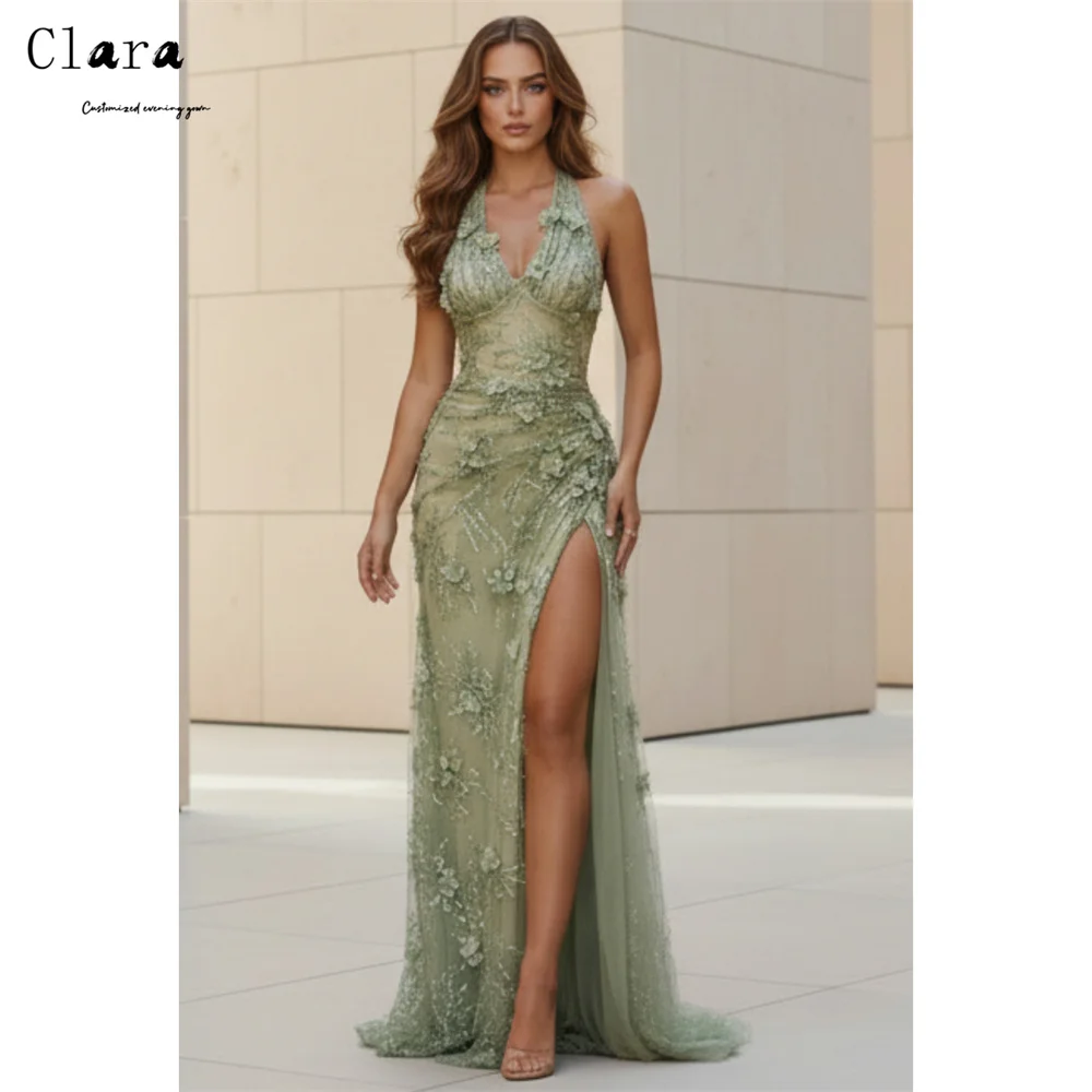 Clara Custom Green 3D Flowers Side Slit Fishtail Women's Ball Gown Dresses for Luxury Party Party Long Dress 2026 Woman Evening