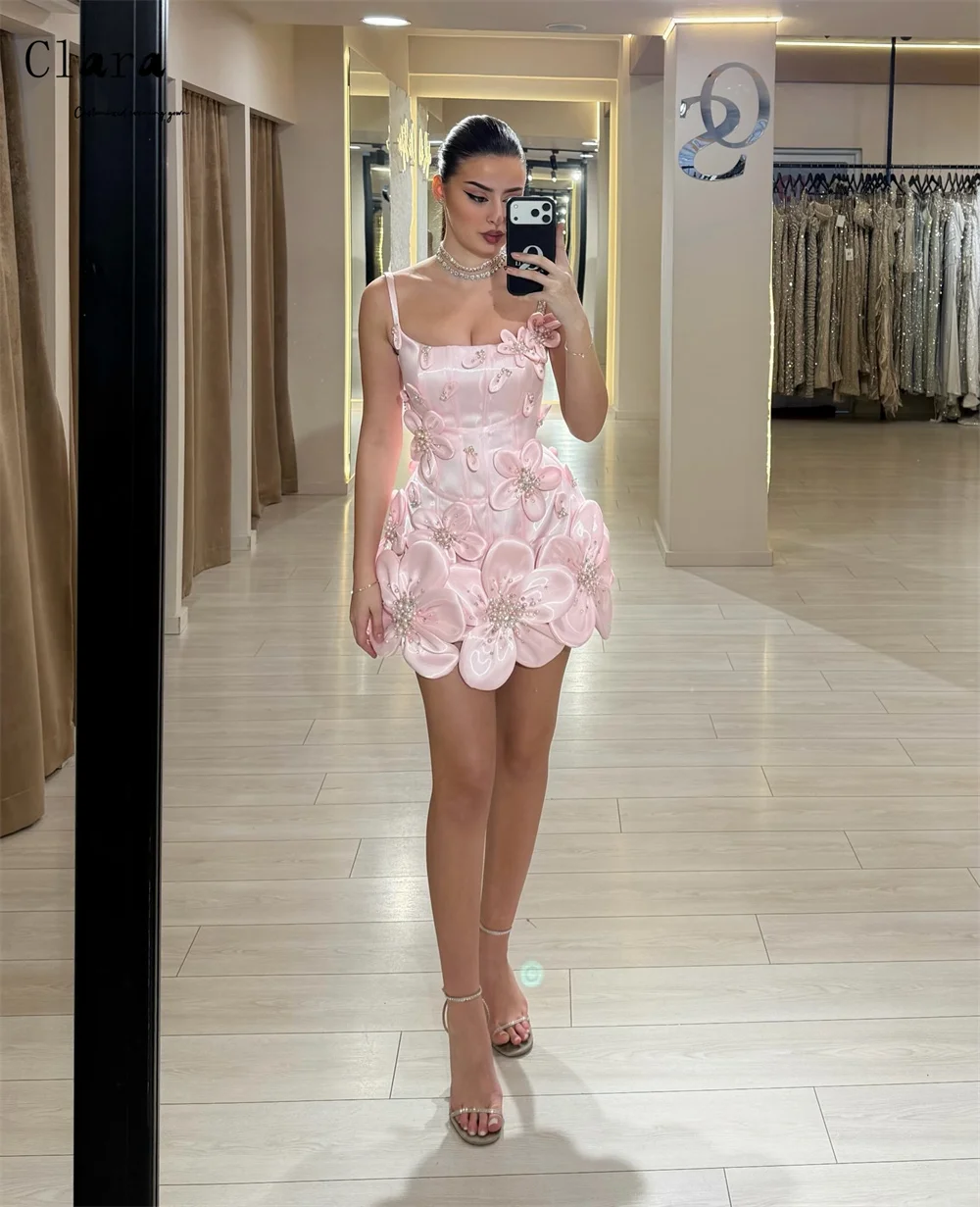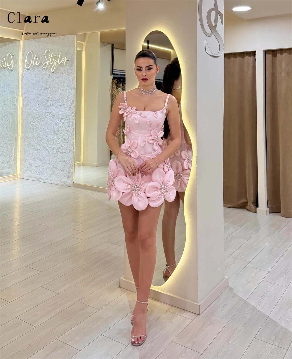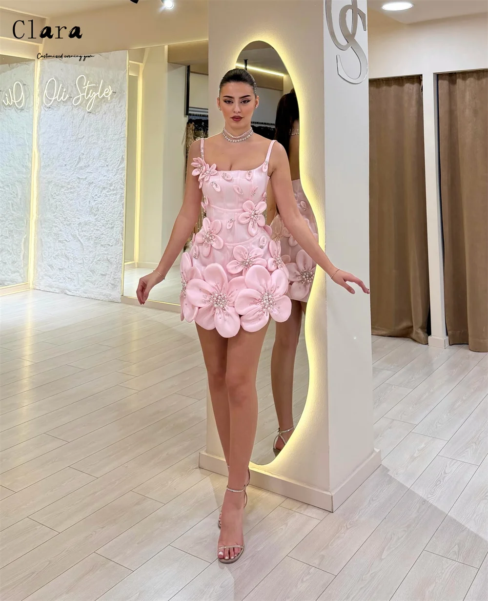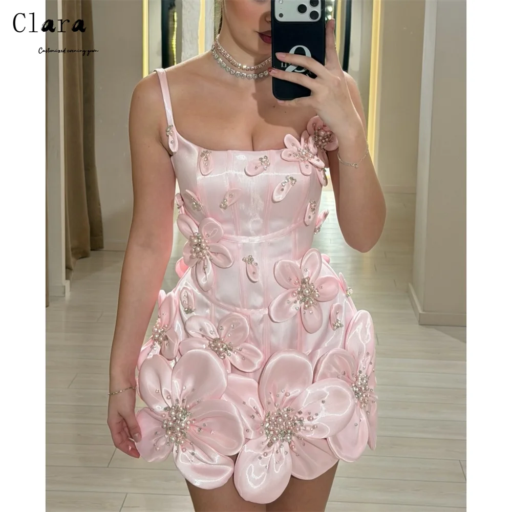 Clara Custom Pink Flower Spaghetti Straps Sleeveless Elegant Dresses Woman for Evening Party Dresses Luxury 2026 Long Prom Dress