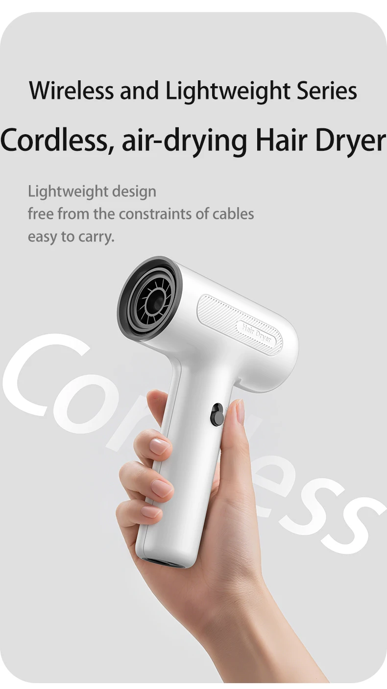 Perfect as a cordless travel hair dryer, portable hair styling tool, or dry painting blower (boosts creative efficiency for artists).