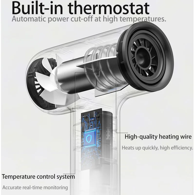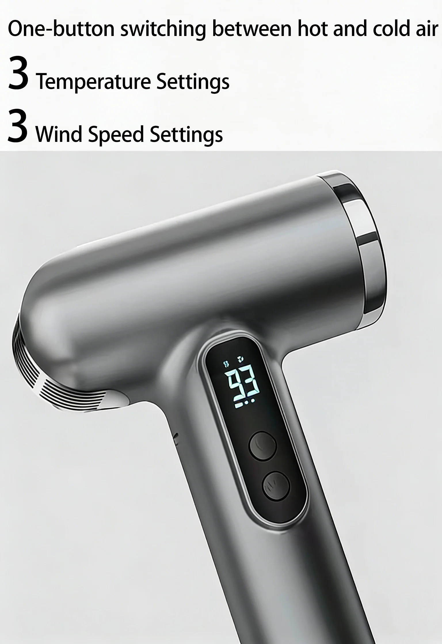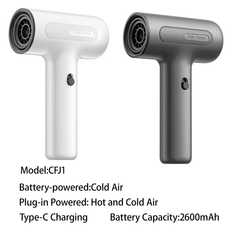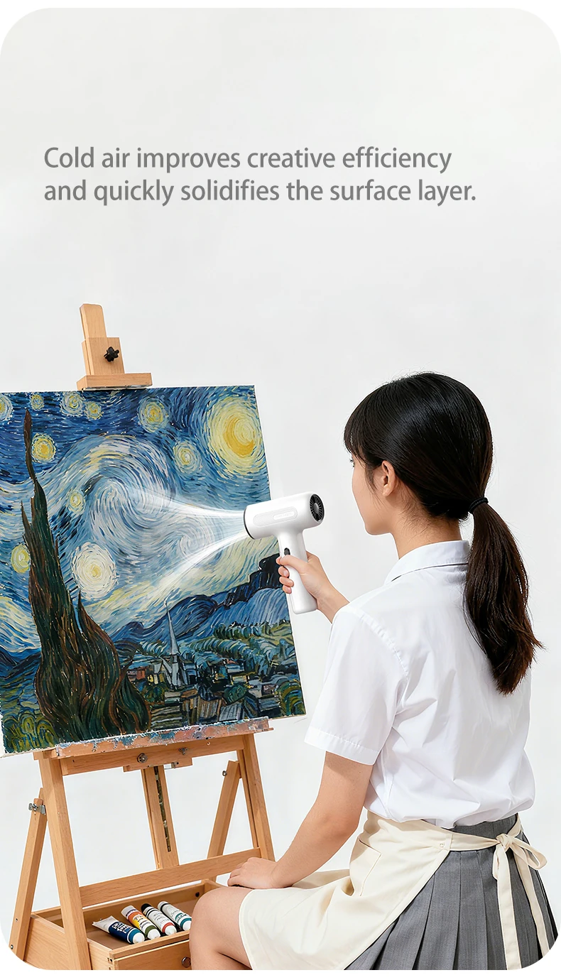 Cold Air: Powered by built-in new energy vehicle-grade battery (Type-C rechargeable), ideal for quick hair touch-ups or drying paint(solidifies art surfaces fast).