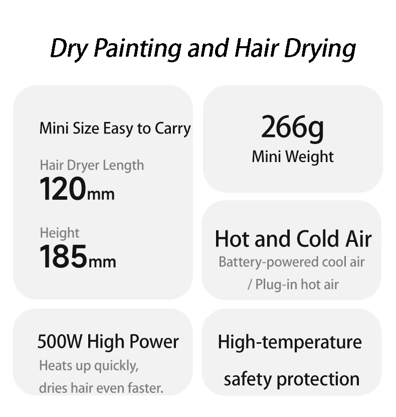Mini Cordless Hair Dryer (2-in-1 for HairDrying & Dry Painting)