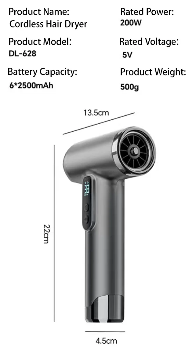 Cordless High-Speed Hair Dryer (Model:DL-628)