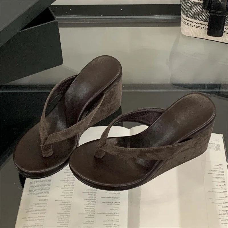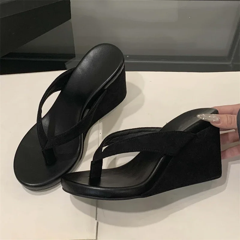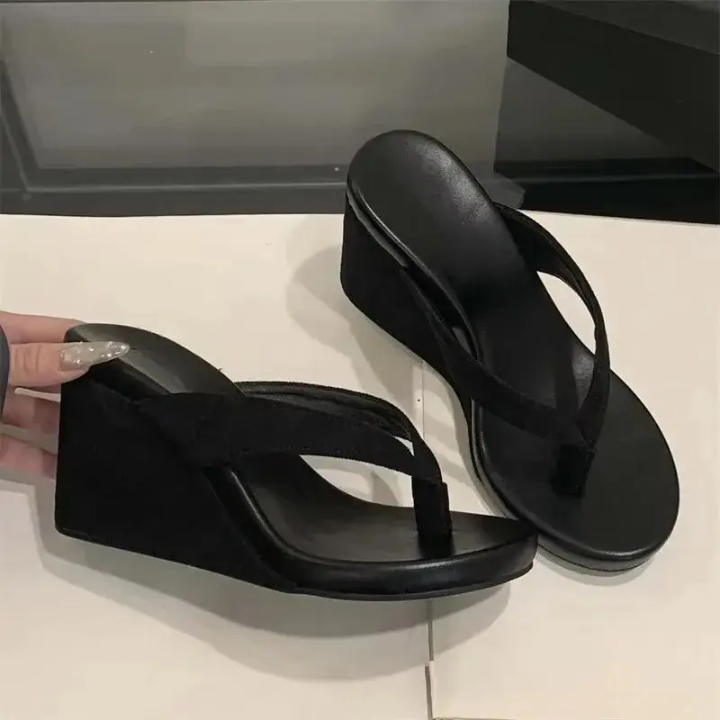 Eilyken Summer Leopard Print Clip Toe Platform Wedges Women Slippers Fashion Thick Bottom High Heels Flip Flops Shoes