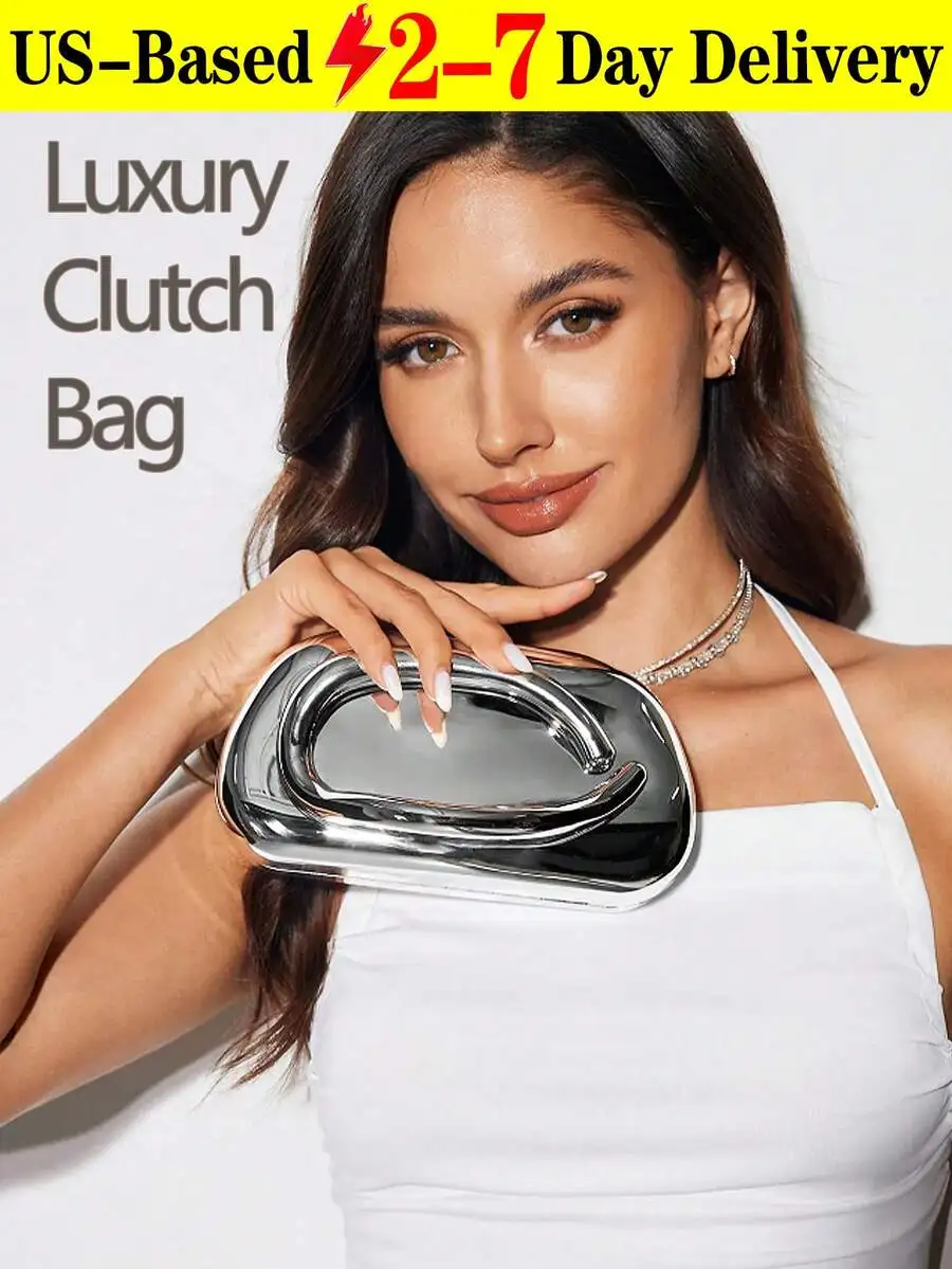 / Gold Metallic Finger-Loop Clutch Bag for Evening Party Wedding