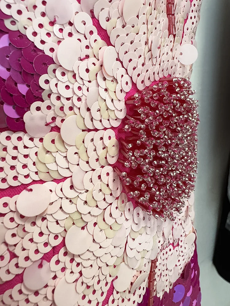 / HIGH STREET Newest 2026 Designer Fashion Women’s Beaded Sequin Three-Dimensional Flower Short Sleeved Midi Dress