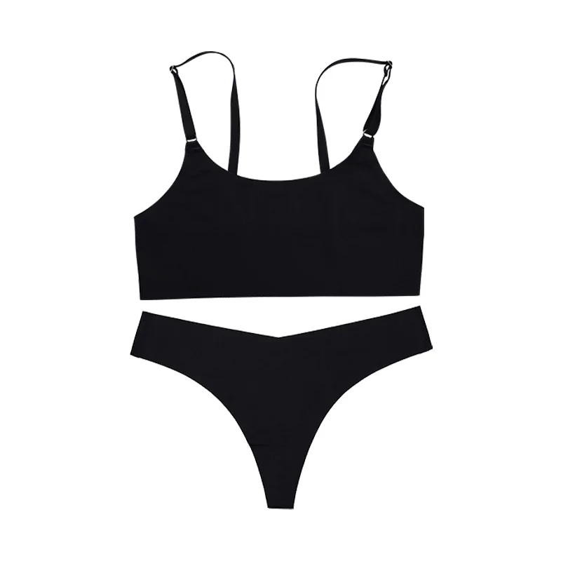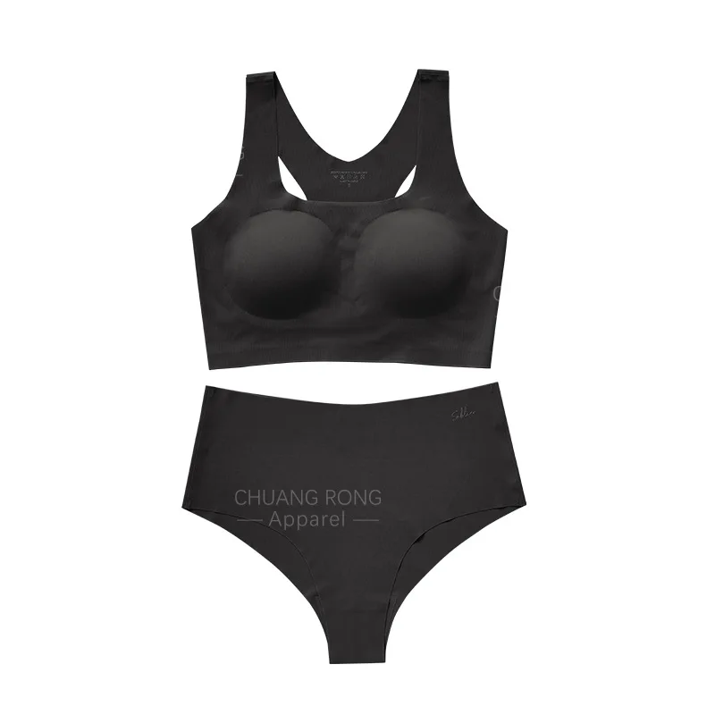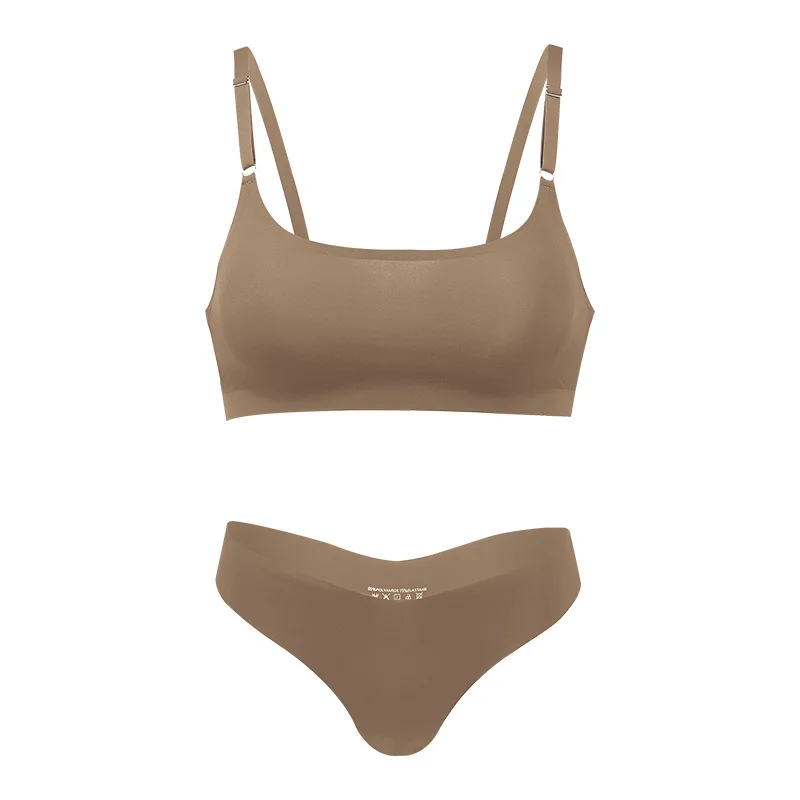 Hot Sale High Quality Latest Design Us Size Stylish Solid Ice Silk Seamless Wireless Bras And Women Underwear Set