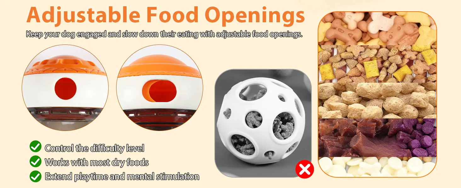 · Adjustable Slow Feeder – The dog treat dispenser toy features an adjustable food outlet to accommodate a variety of pet treats, including dry food, jerky, or snack biscuits. Adjust the switch to adjust the dispensed amount and feeding speed based on the size of the treat. This is a versatile dog slow feeder toy and treat dispensing toy, making it a perfect educational treat toy for your dog