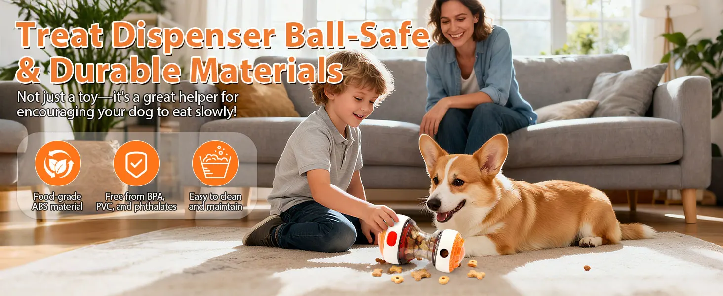 · Pet-Safe Material – The durable treat dispensing dog toys is made of high-quality food-grade ABS material, ensuring your dog's health and safety. It is non-toxic, harmless, safe, and reliable, allowing you and your pet to use it with peace of mind. It's not only a dog treat dispenser toy but also a dog puzzle toy, making it an ideal choice for interactive dog toy. The dog toy treat dispenser ideal for puppies, small dogs, and medium-sized dogs or cat, not suitable for Aggressive Chewers.