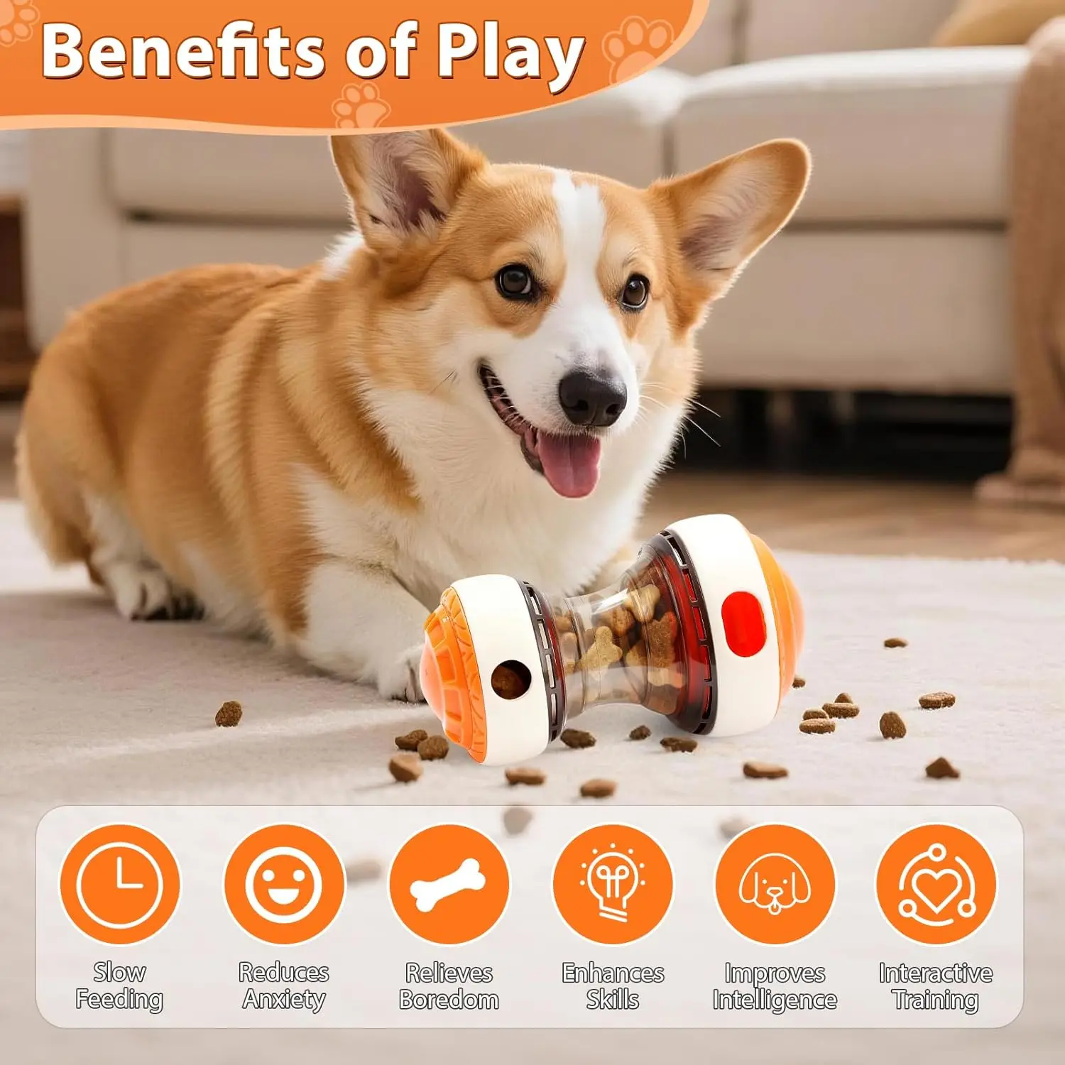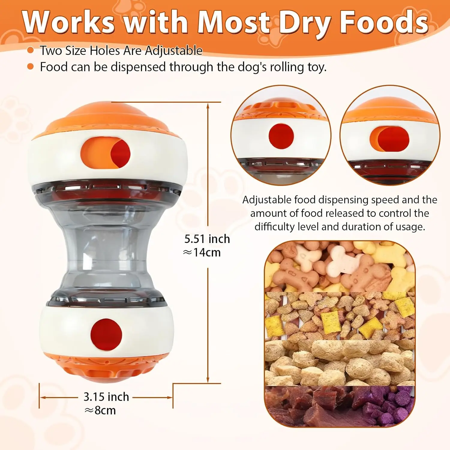 · Keep Your Dog Busy – Say goodbye to boredom and obesity! This interactive chase toy and educational treat dispensing toy is designed specifically for your dog. Dispensing treats by rolling the toy sparks your dog's curiosity, encourages active exploration, and keeps them busy. The interactive dog toys effectively reduces anxiety and boredom in dogs through intellectual stimulation, It is the best choice for dogs' daily play. This dog treat toy not only helps dogs exercise their brains and improve their intelligence while playing, but also promotes health by encouraging slow eating, helping them avoid obesity. Please use this interactive toys under supervision to ensure safety.