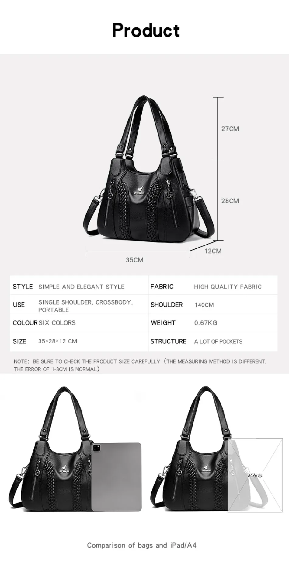 | Color | Light Brown, Dark Brown, Burgundy, Rice White, Yellow, Black |