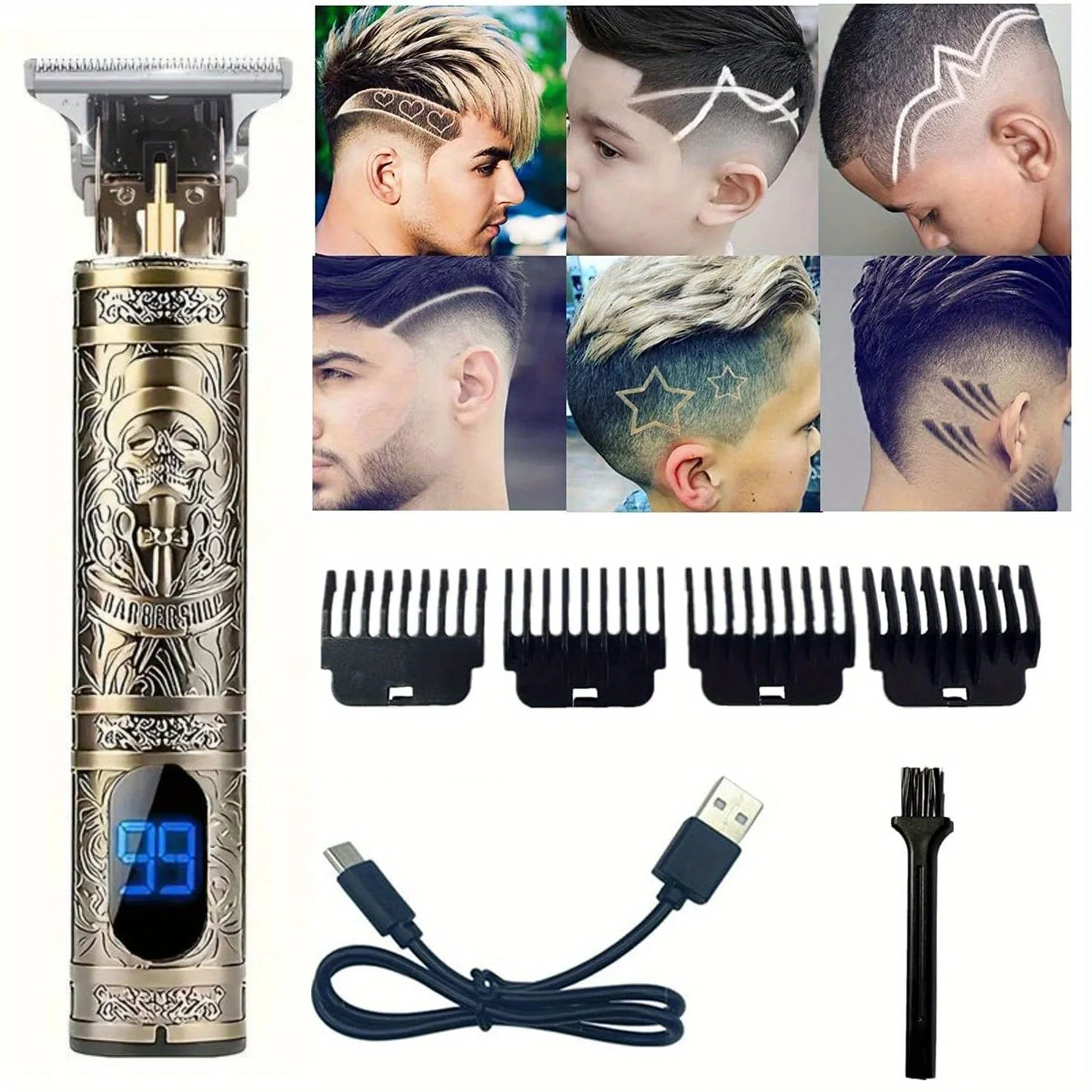 LCD Electric Hair Clipper for Men Oil Shaving Head Pusher Sculpture Shaver Rechargeable Hair Trimmer Hairdressing Set Gifts