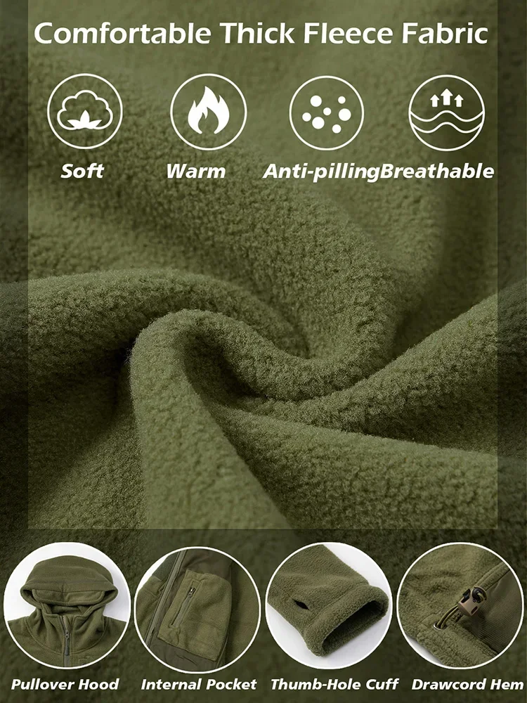 Men’s Hunting Fleece Jacket Hiking Hunting Outdoor Fleece Tactical Jacket Winter Warm Full Zip Military Hoodies Multi-Pockets