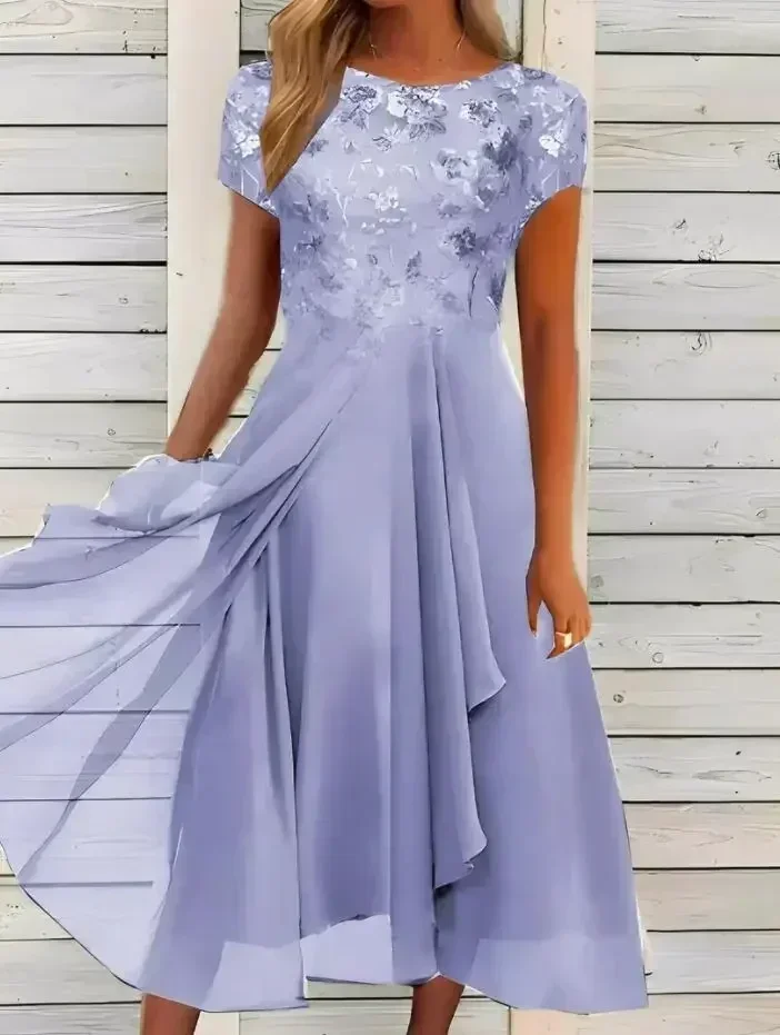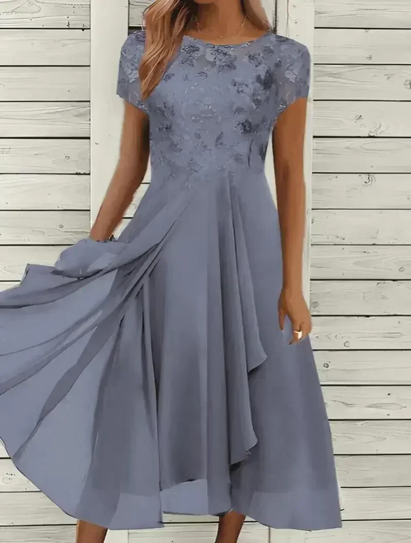 New 2026 Women's Lace Dress for Party Elegant Bride Wedding Dress Plus Size Jewel Neck Knee Length Chiffon Lace Long Party Dress