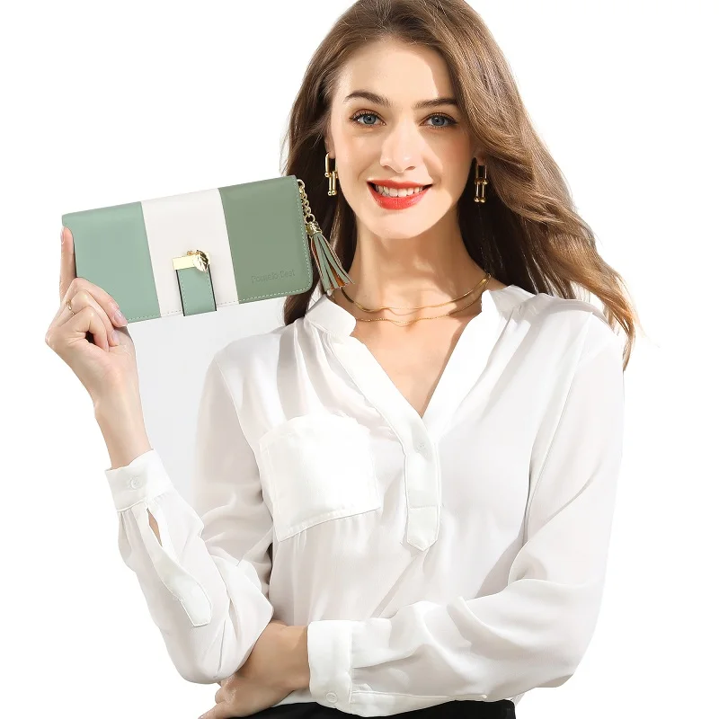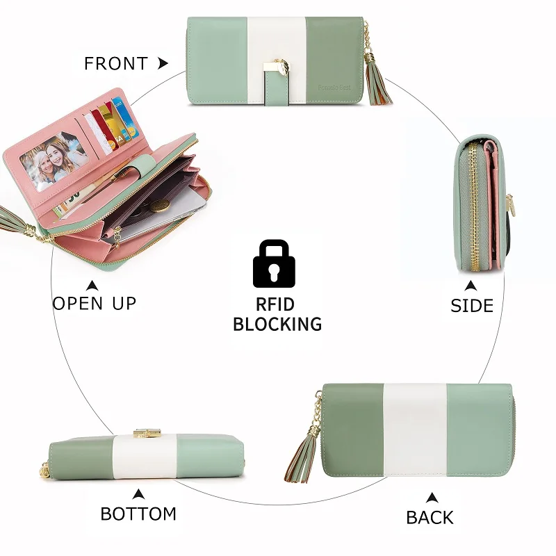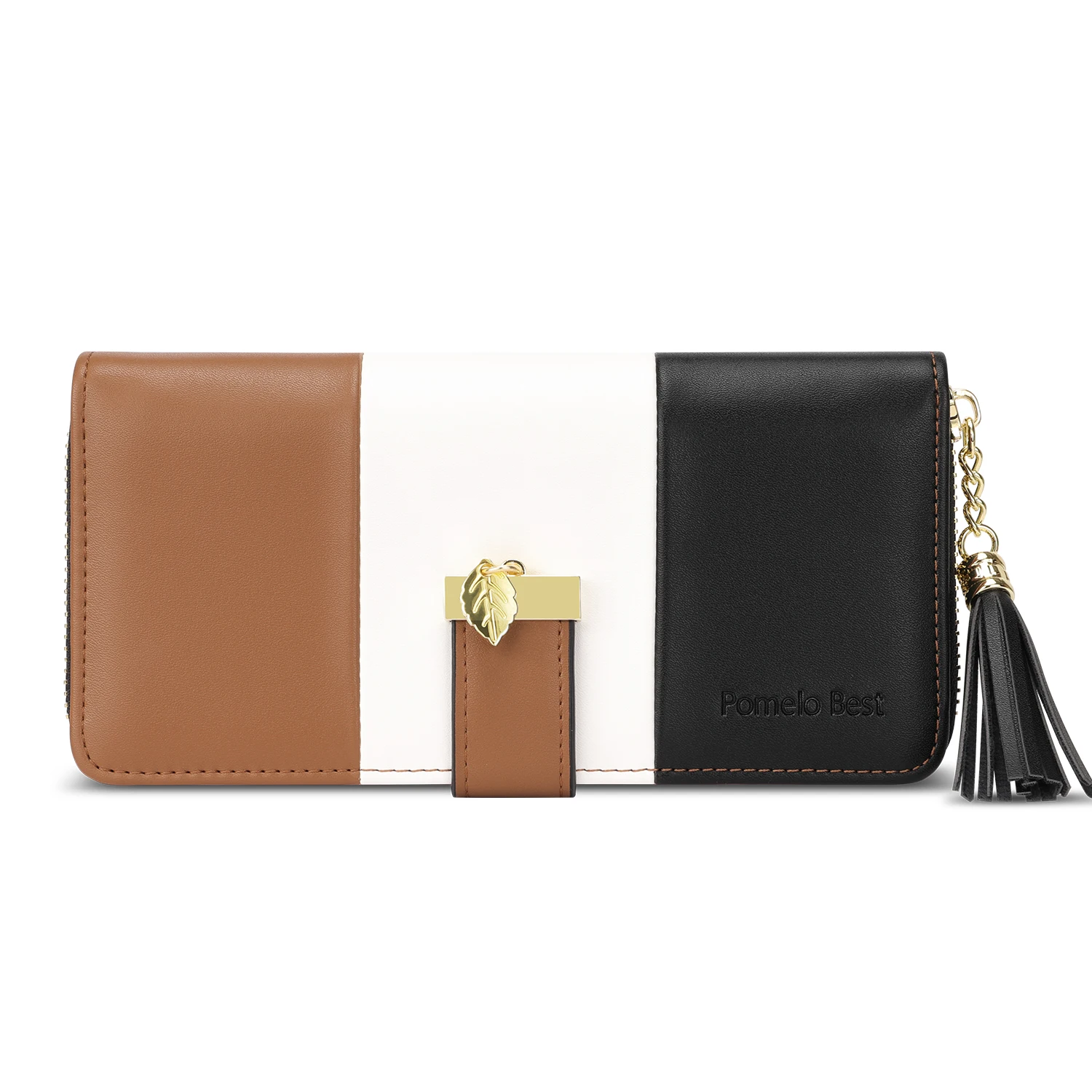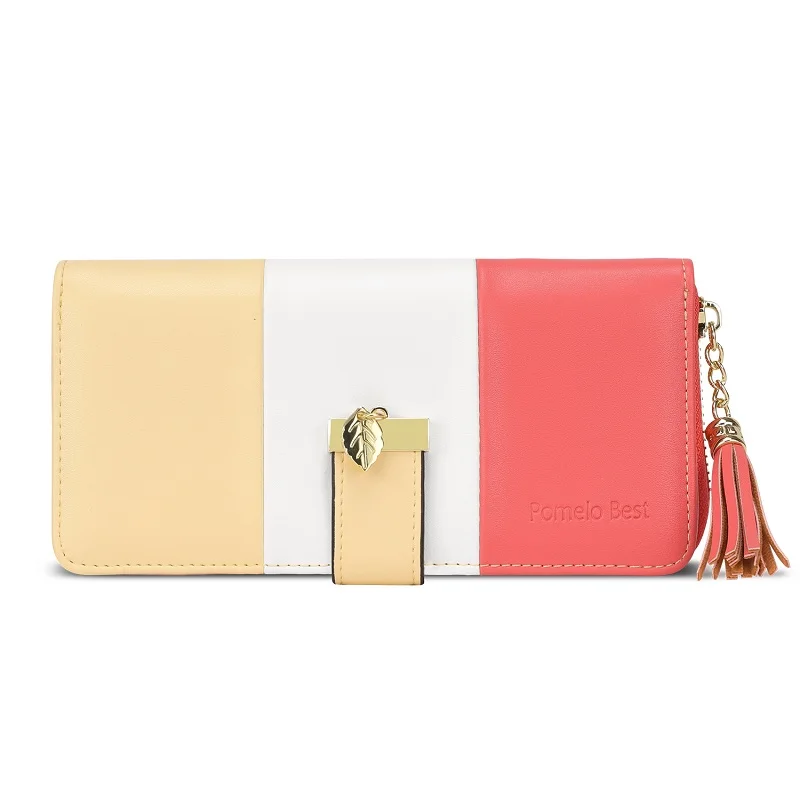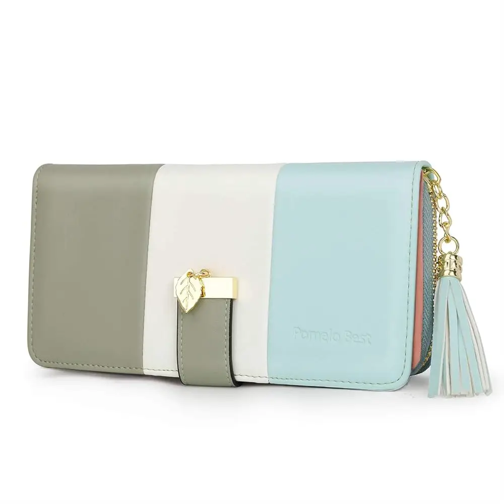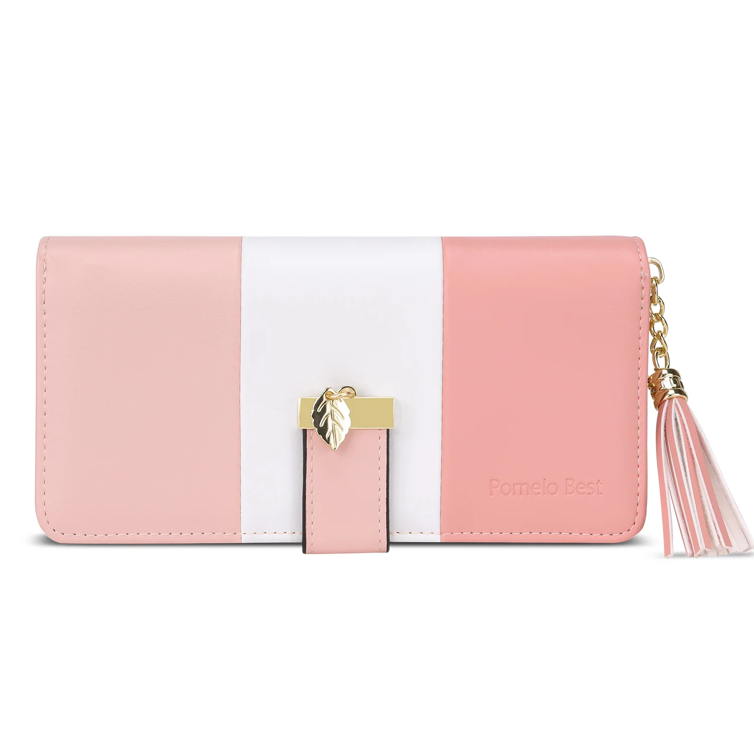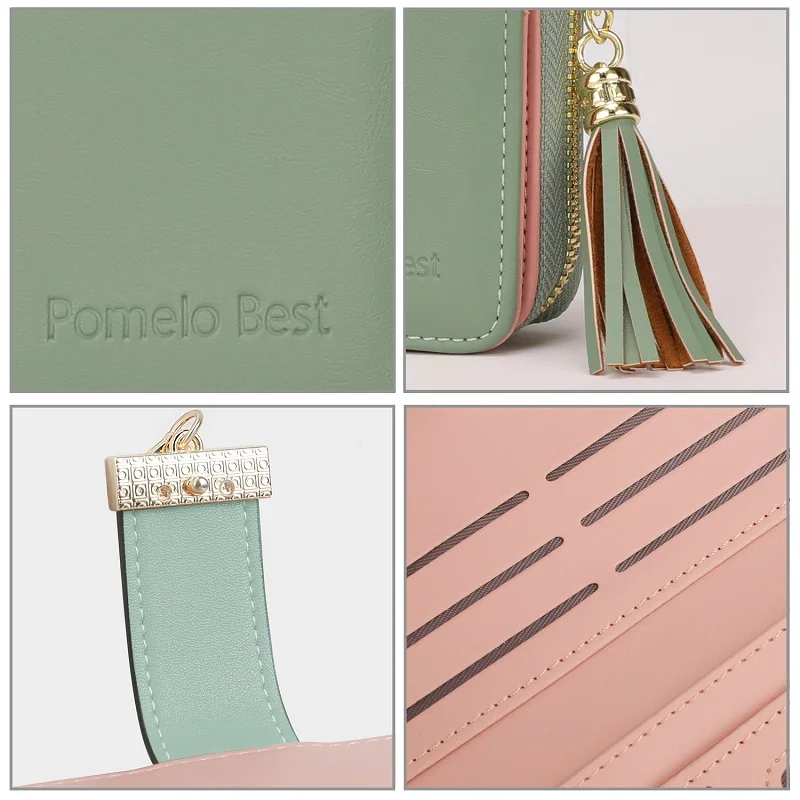 The Pomelo Best Women's Wallet is crafted from high-quality faux leather, featuring a polyester lining, durable gold-coloured metal fittings, and a trendy tassel charm to elevate your style.