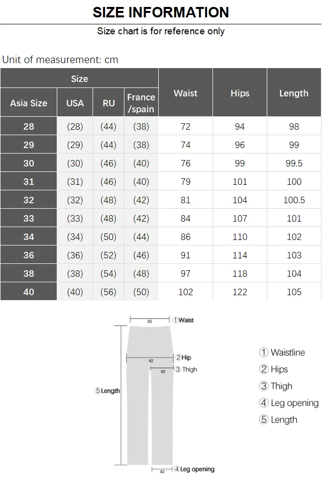1. The manufacturer is a China size,32 Size ≈ 32 inches Waist Please tell us your height and weight, and we suggest a suitable size for you.