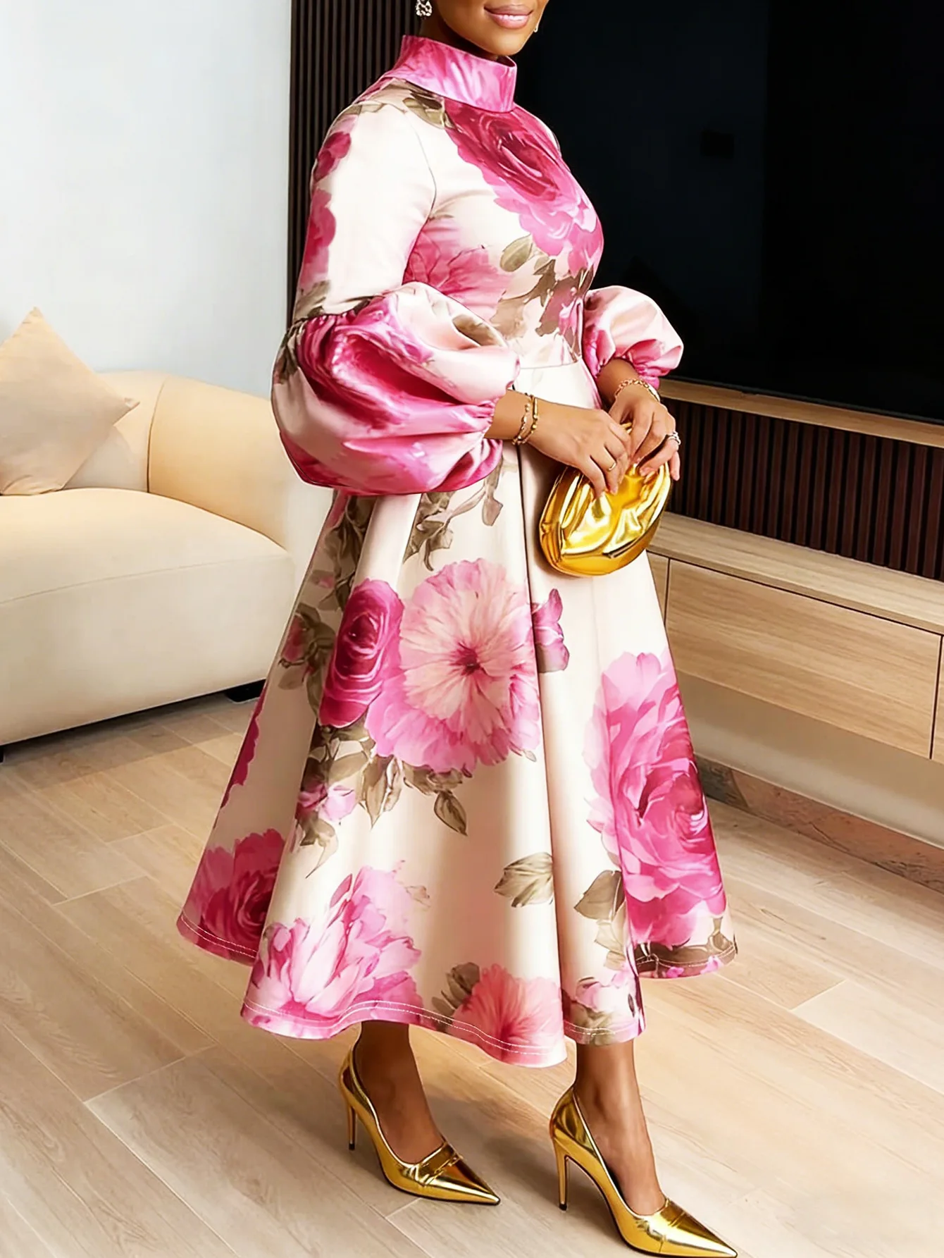 Feature : Flower Print,Pleated,