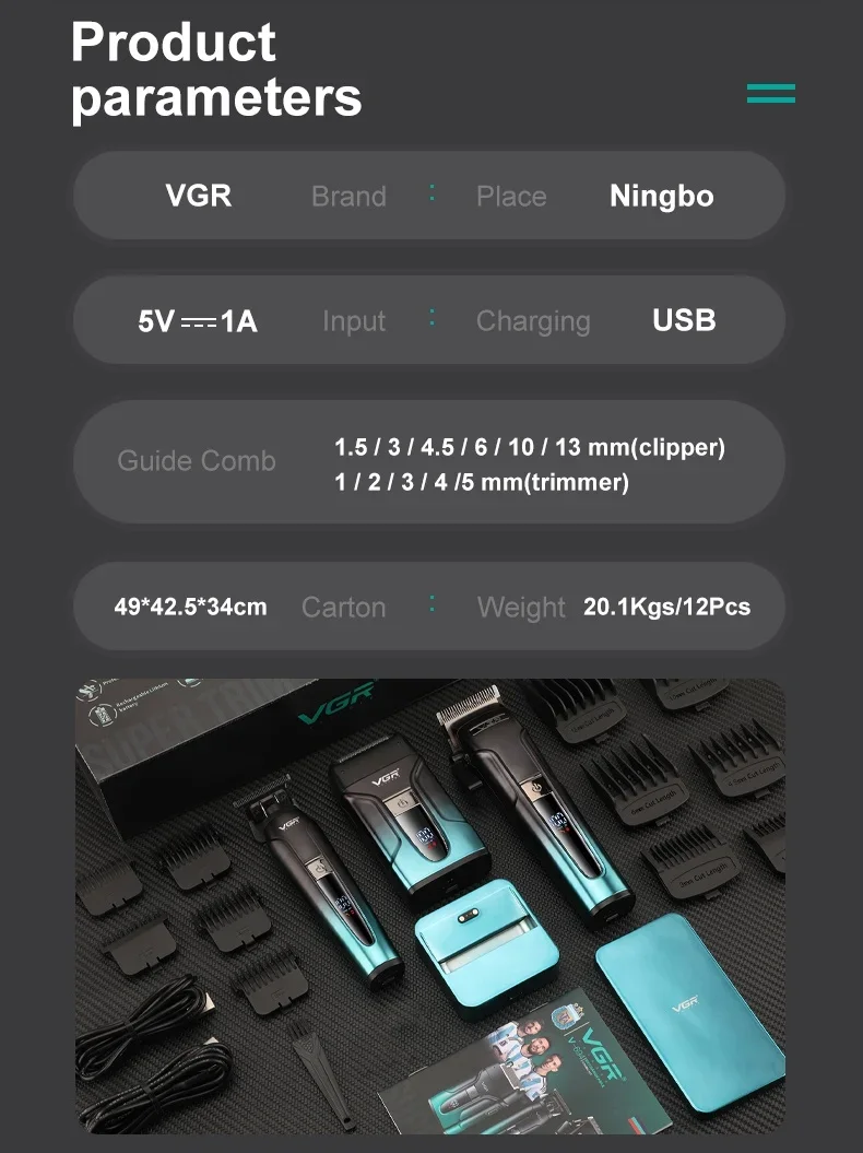 5.Long-Lasting Battery Performance: Powered by a high-capacity battery, this trimming kit ensures hours of uninterrupted use. Say goodbye to frequent recharging and hello to a seamless grooming experience, wherever you are.