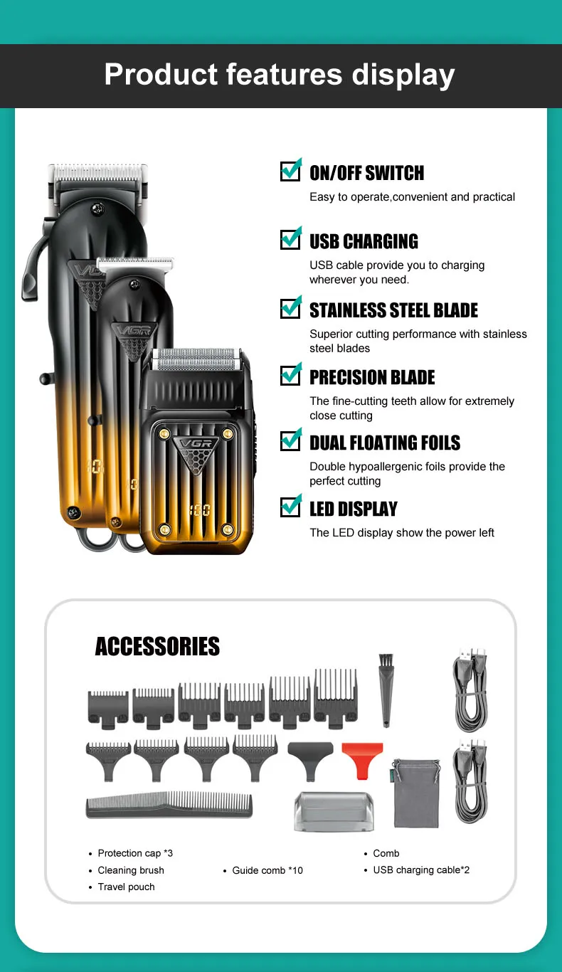 Be the first to review “VGR Hair Trimmer Professional Electric Shaver Adjustable Trimmer Barber Clippers Beard Trimmer Razors Foil Shaver for Men V-644”