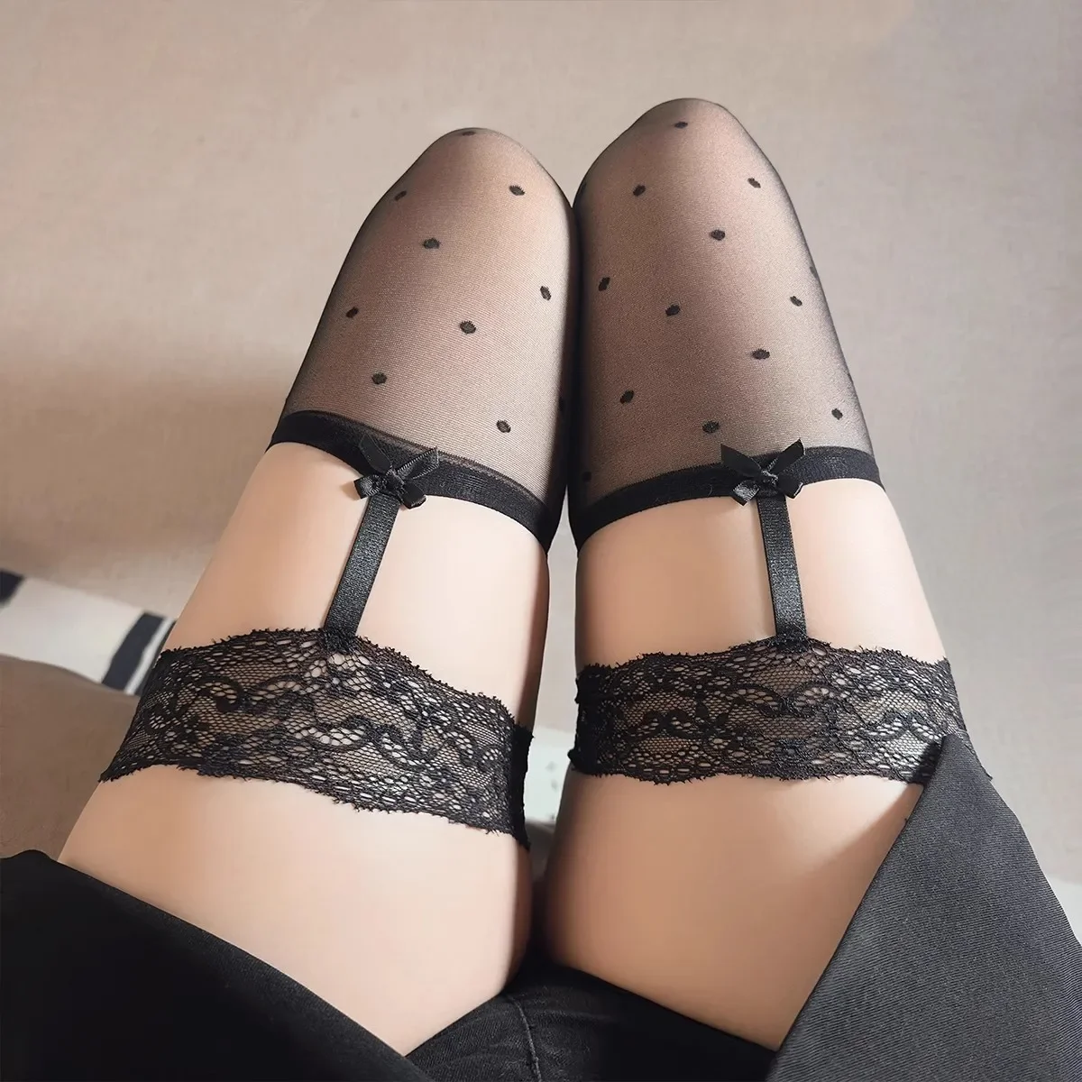 Sexy Ultra-Sheer Core-Spun Thigh-High Stockings (Bow & Heart Design)