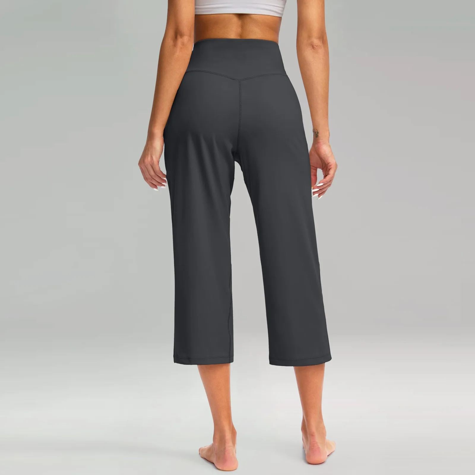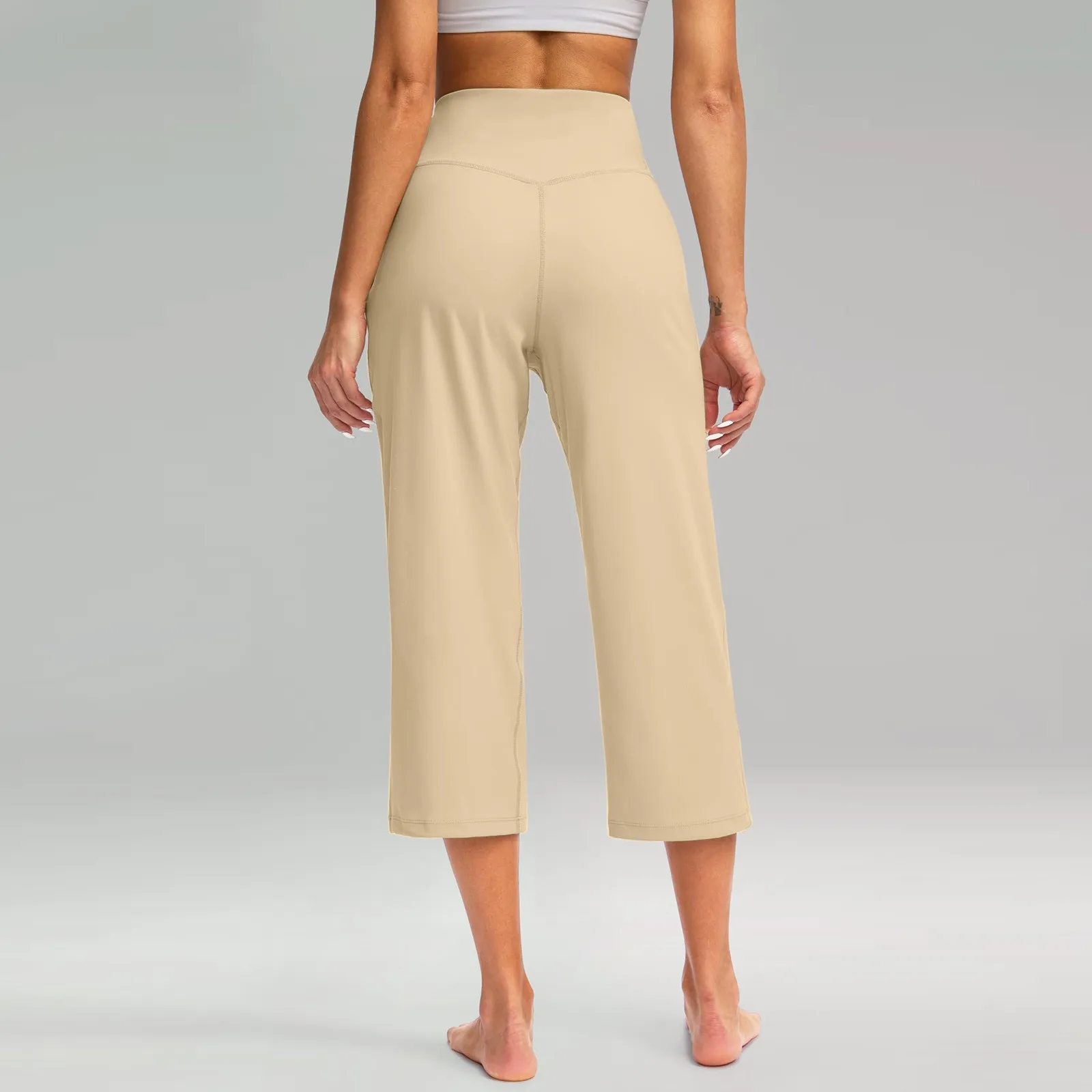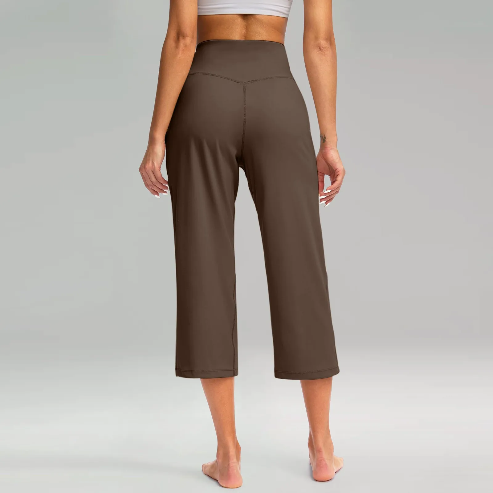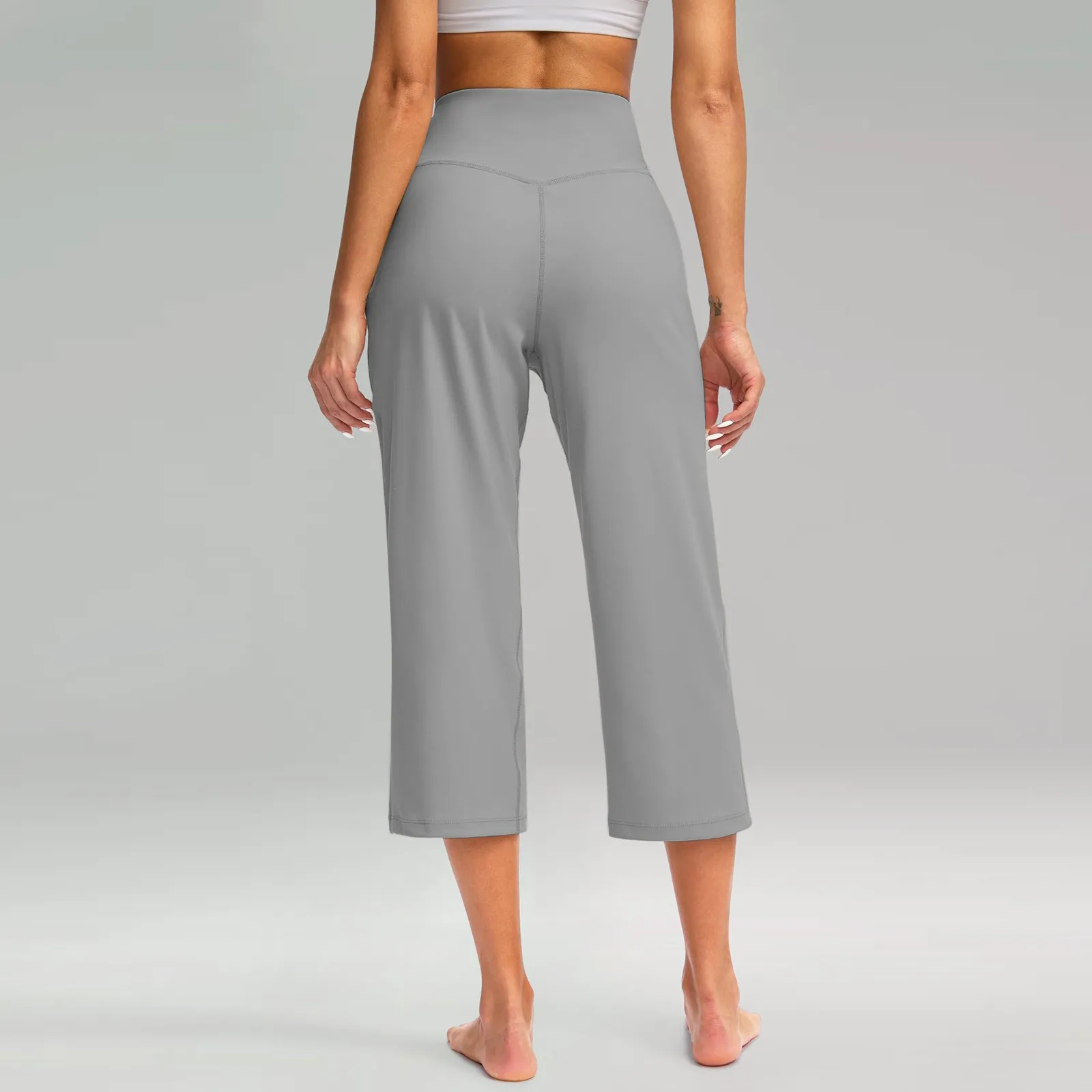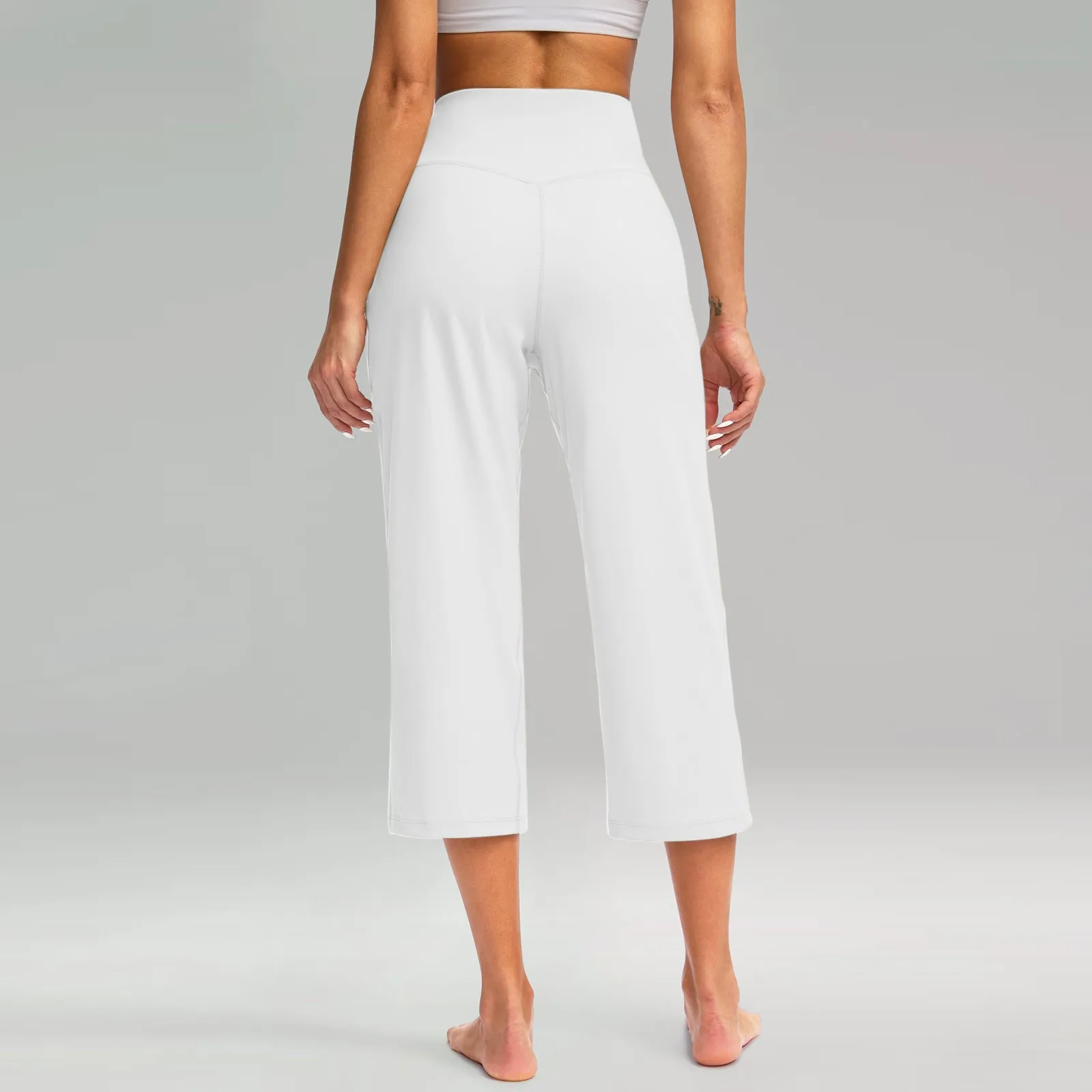 Women Elastic High Waist 3/4 Pant Casual Active Fit Wide Capris Leg Pants Trousers With Pockets