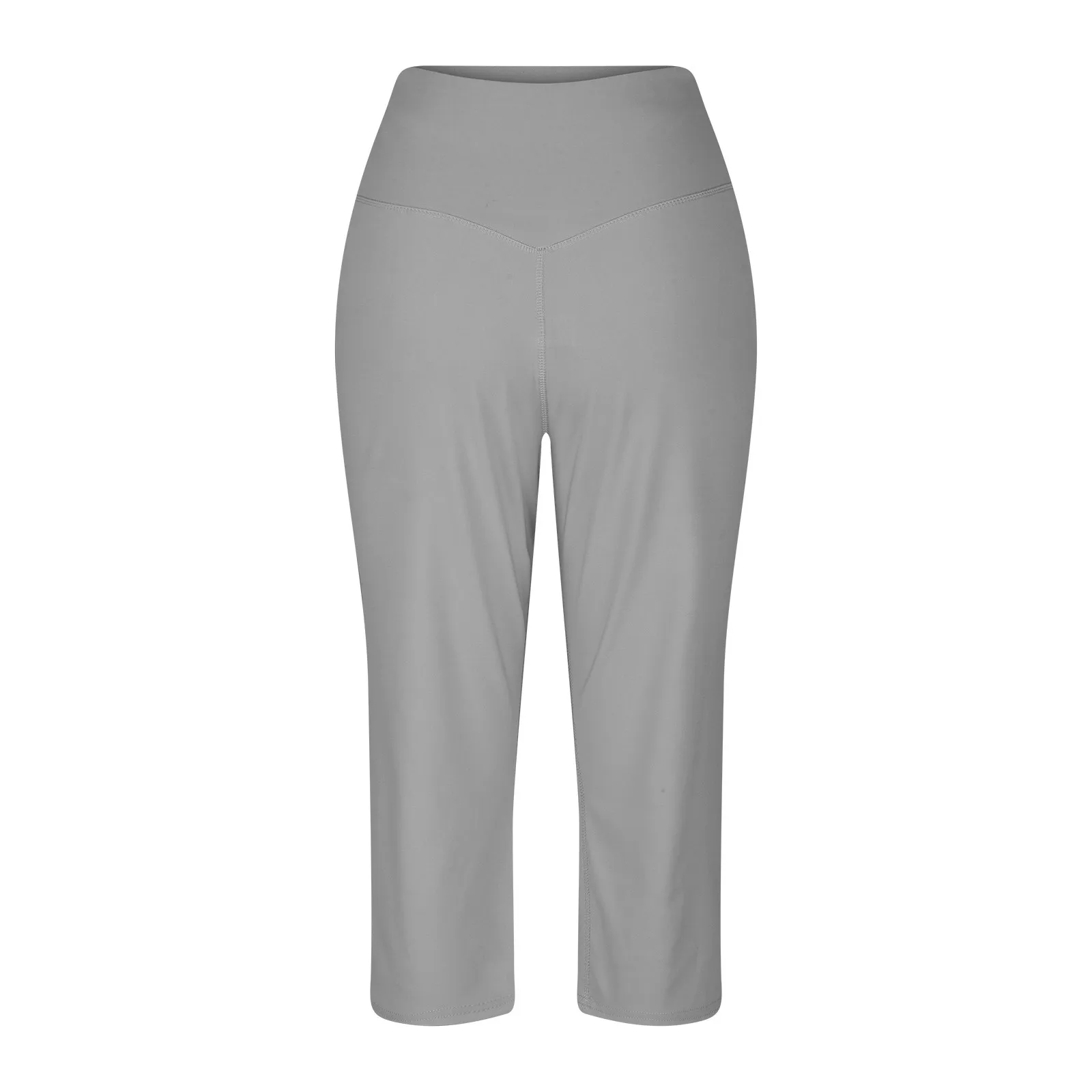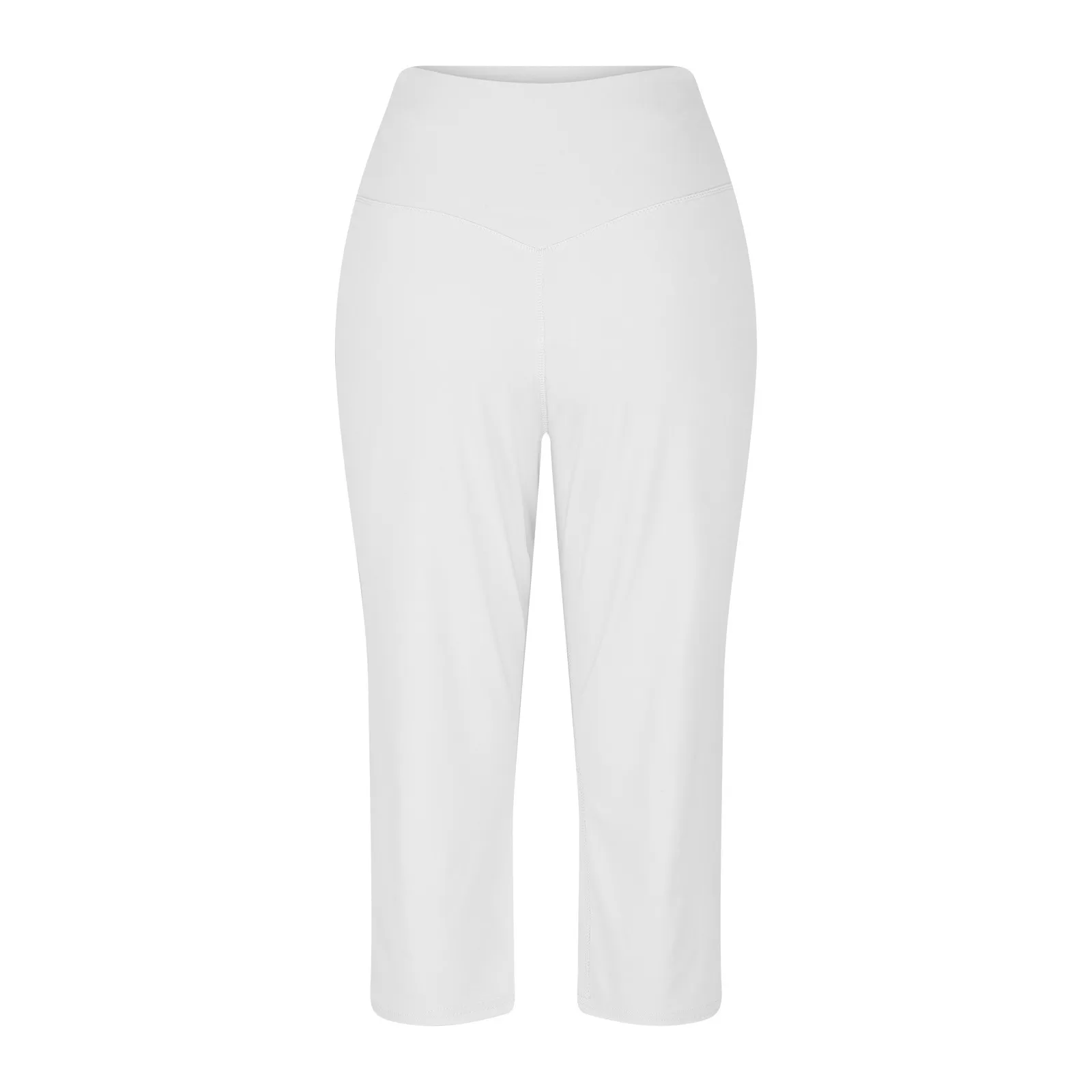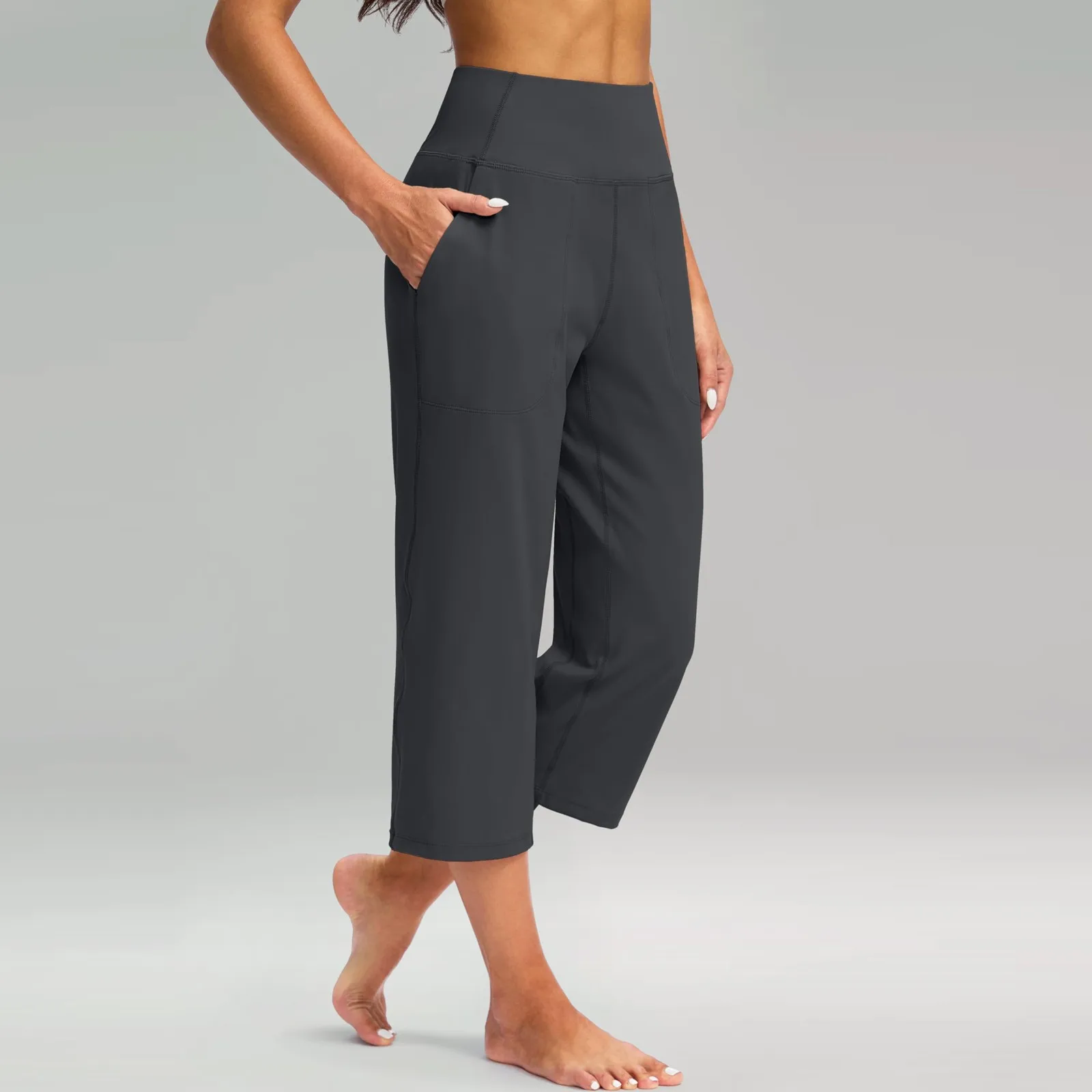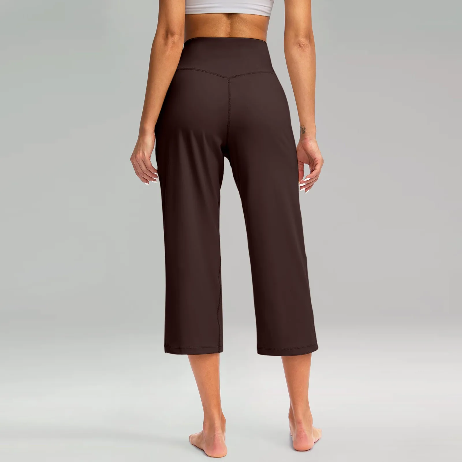 Women Elastic High Waist 3/4 Pant Casual Active Fit Wide Capris Leg Pants Trousers With Pockets