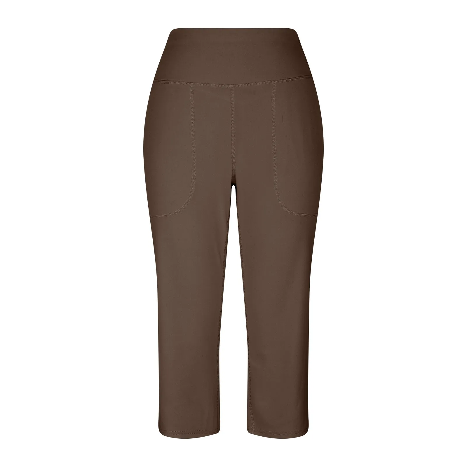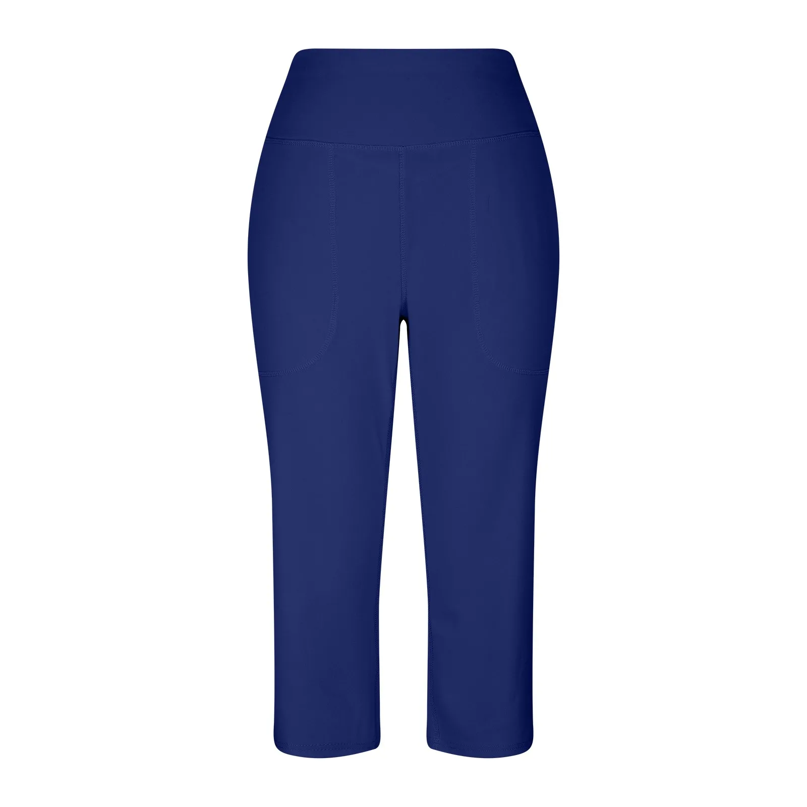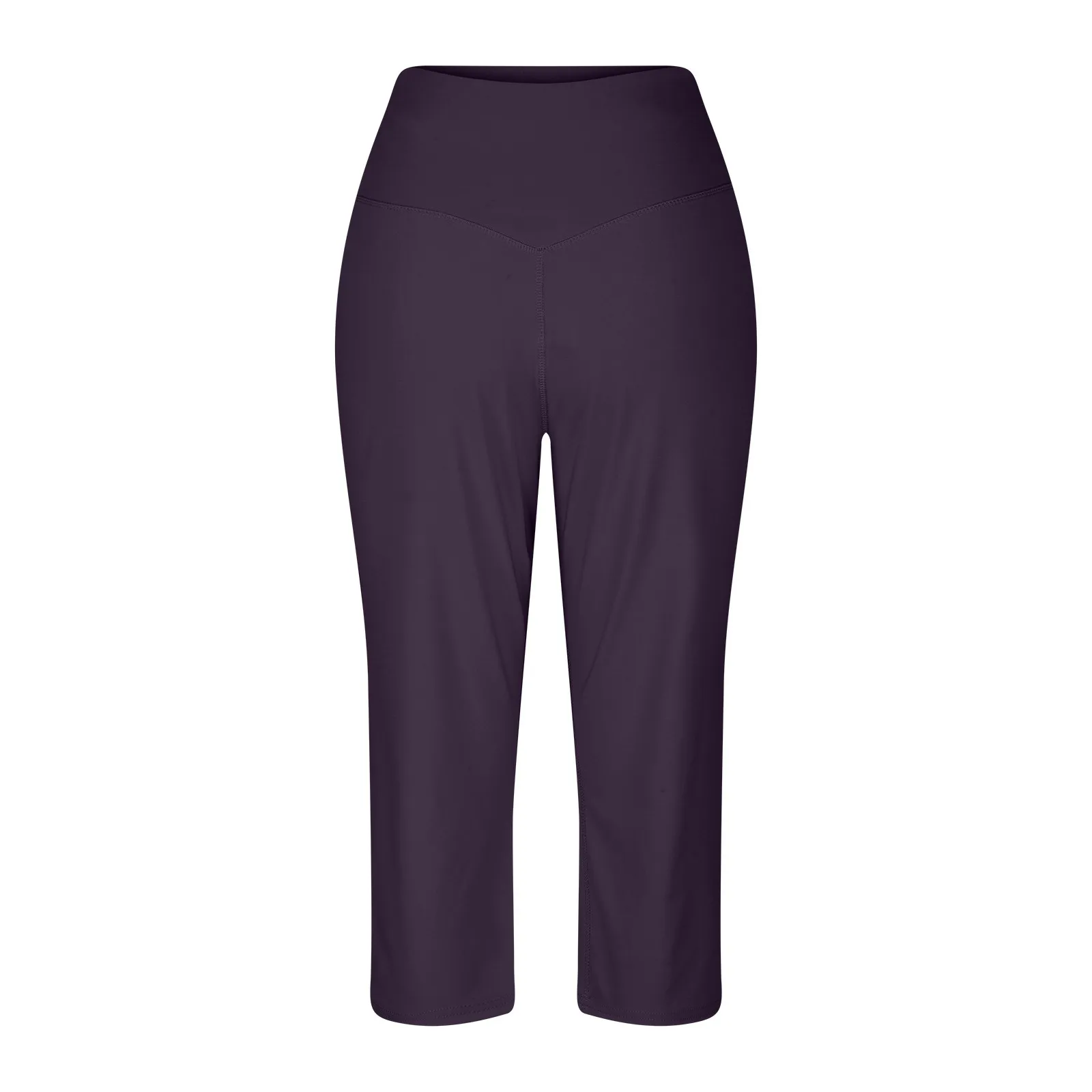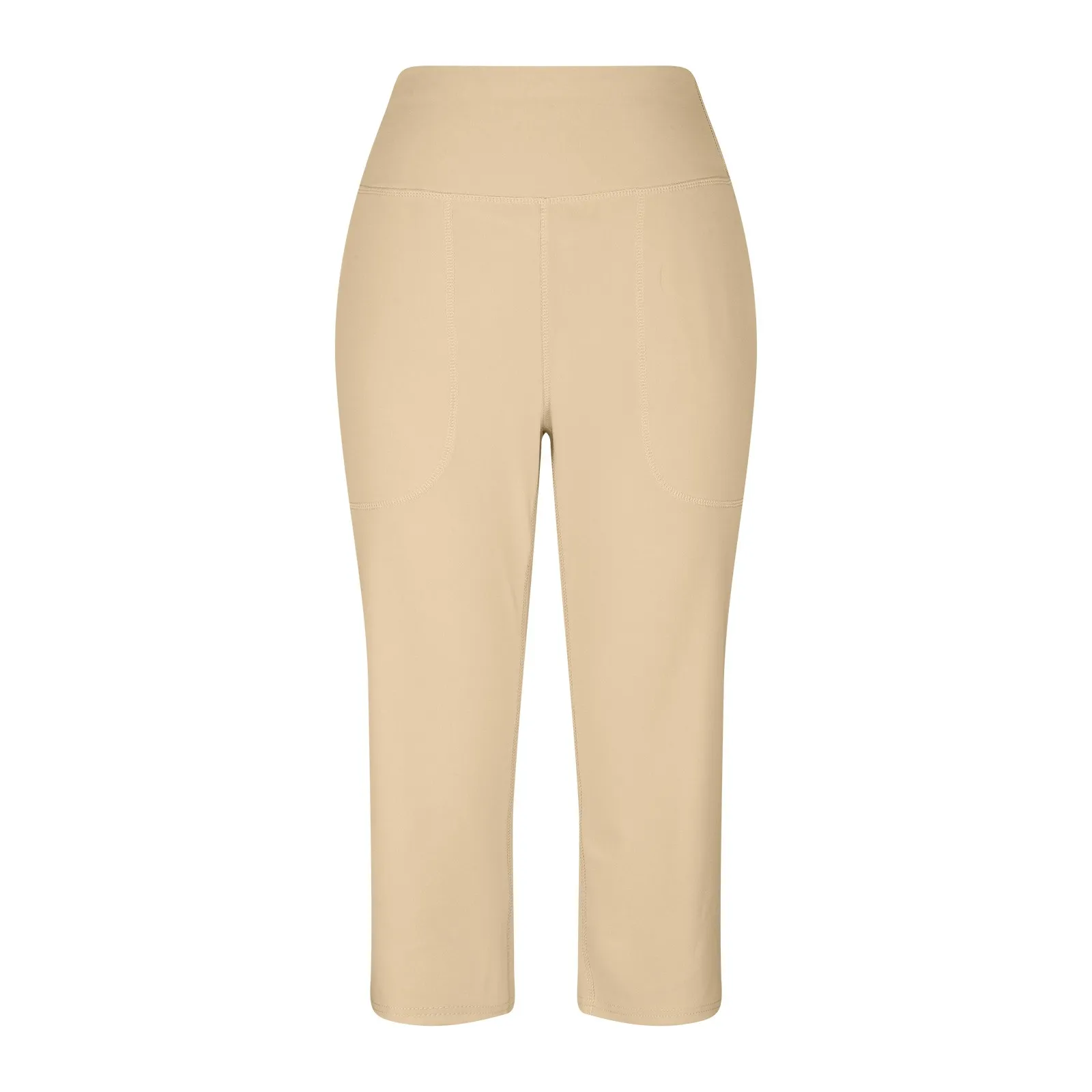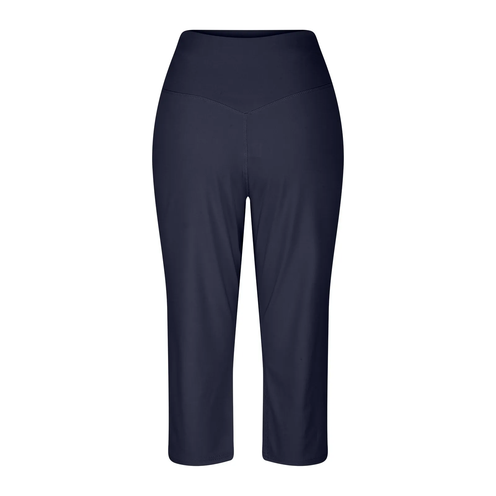 Women Elastic High Waist 3/4 Pant Casual Active Fit Wide Capris Leg Pants Trousers With Pockets