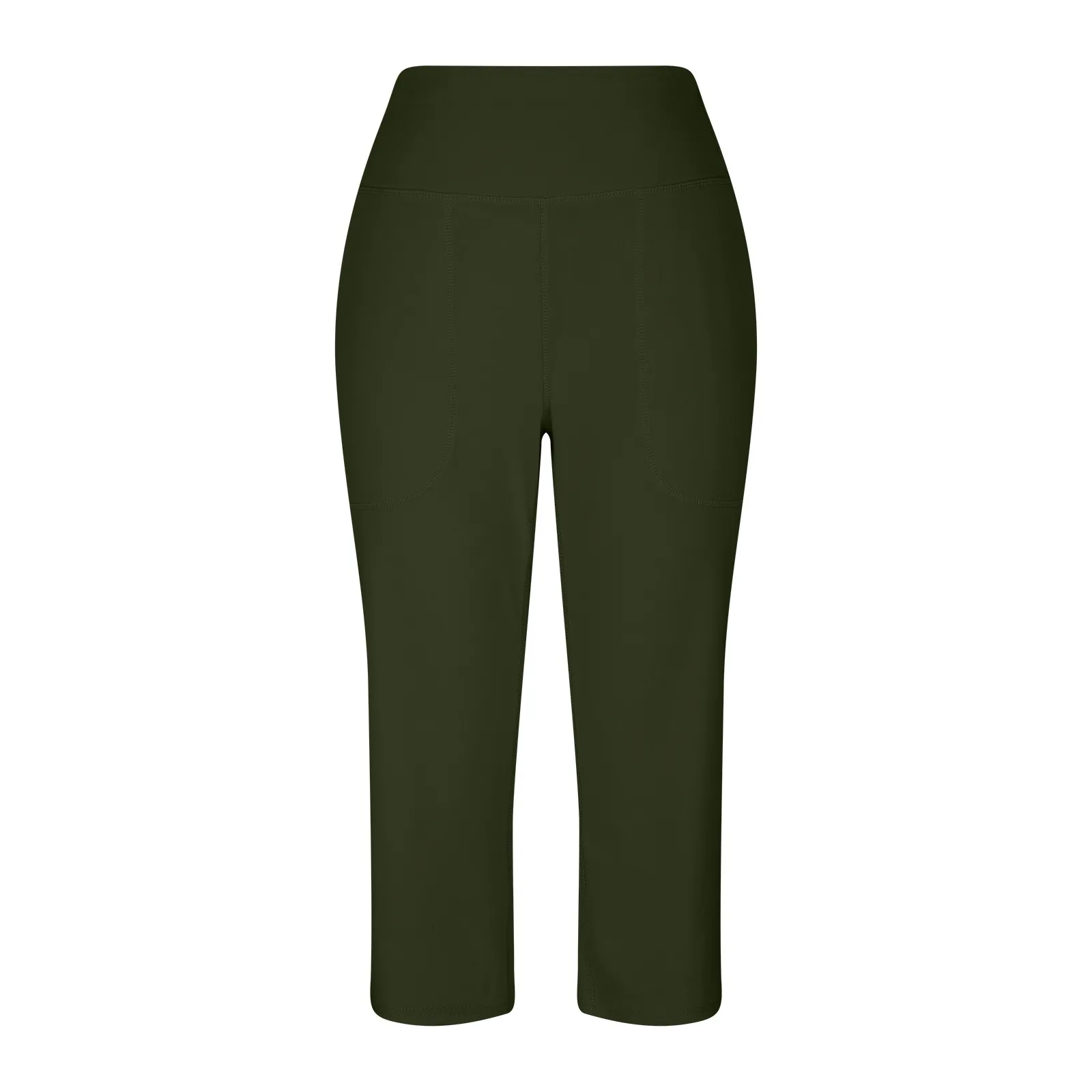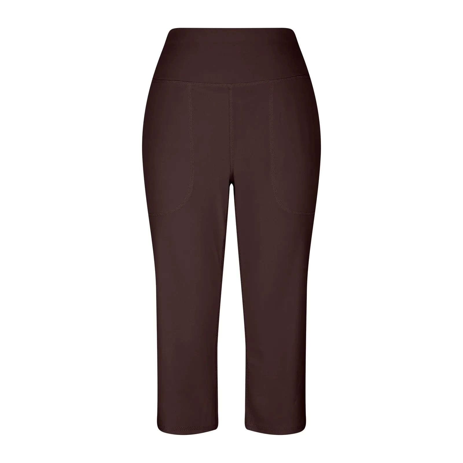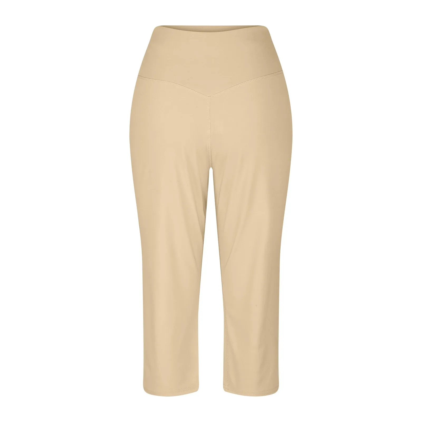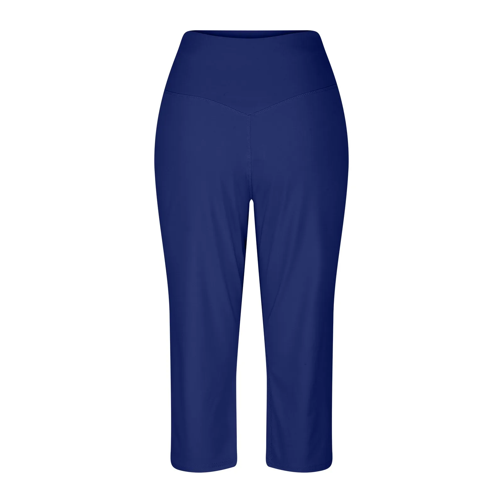 Women Elastic High Waist 3/4 Pant Casual Active Fit Wide Capris Leg Pants Trousers With Pockets