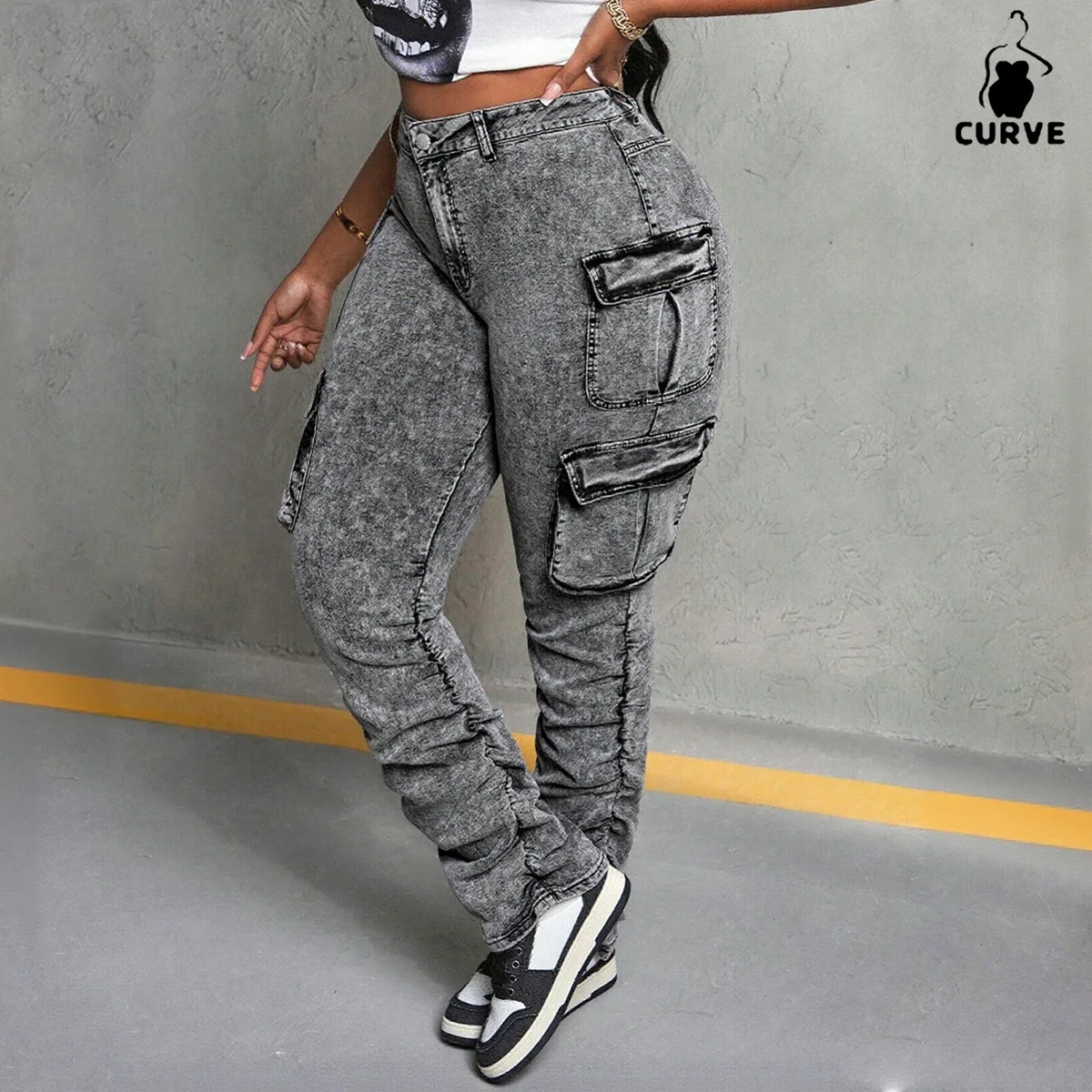 Women's High-Waisted Vintage Cargo Denim Jeans