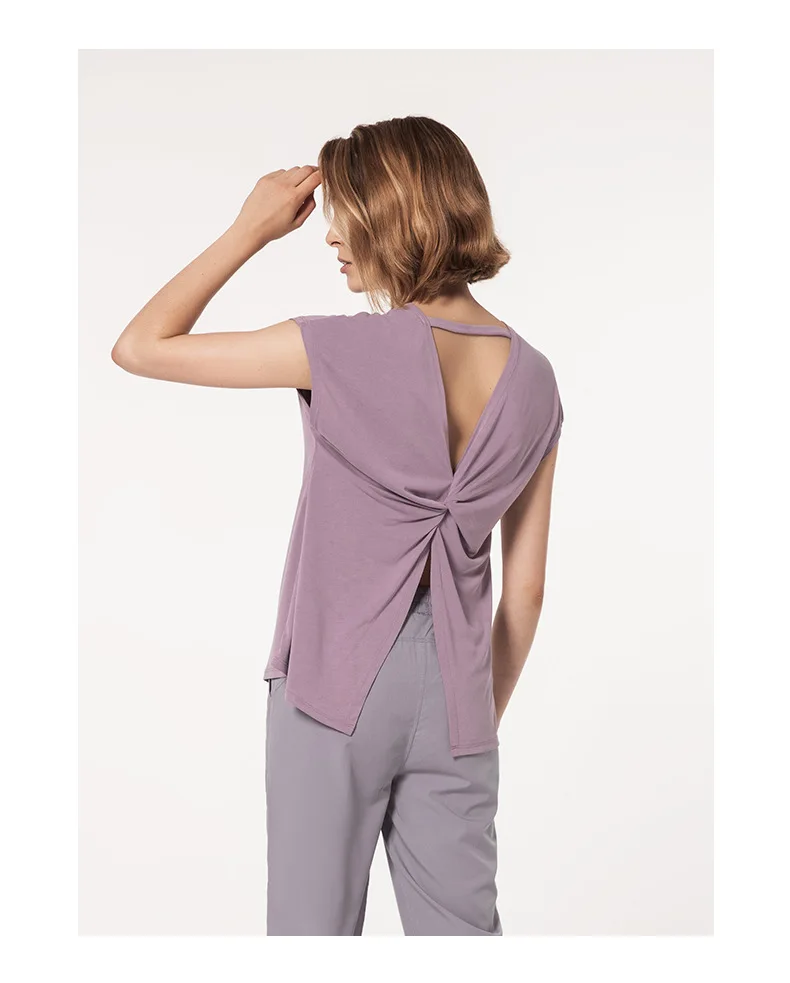 Women's Open Back Yoga Top 2025 – Fashion Split Side Design, Loose Fit Workout Shirt, Breathable Gym Cover for Running