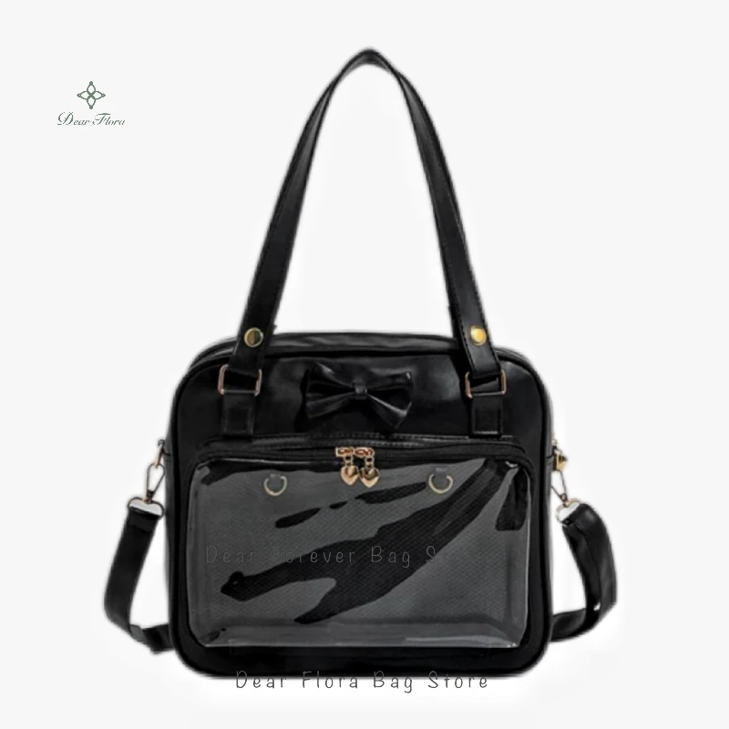 Y2K Cute Bow Ita Bag Girl Transparent Messenger Bag Women Fashion Shoulder Crossbody Bag Ladys DIY Badge Tote Bag Lolita Handbag